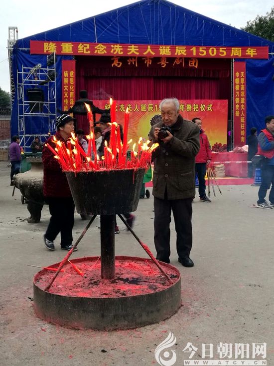 馮永謙先生在高州冼太廟前的祭典現(xiàn)場拍攝(張松 攝)