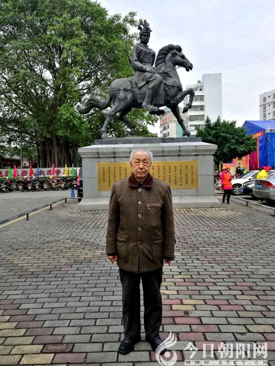 馮永謙先生在高州冼夫人像前留影紀(jì)念,這是他此生第一次來高州,肩負(fù)神圣使命(張松 攝)