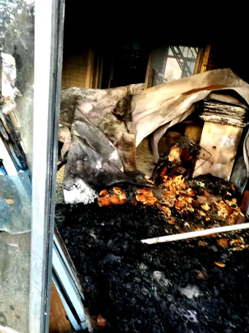 到了現(xiàn)場(chǎng),湯乙慧發(fā)現(xiàn)火勢(shì)已經(jīng)開(kāi)始向二樓蔓延,而一樓的門(mén)緊鎖著,他隨手抄起一個(gè)放在門(mén)外的塑料凳就向門(mén)砸去,塑料凳被砸碎了,可門(mén)卻安然無(wú)恙。情急之下,他在路邊抄起一塊磚頭,將門(mén)玻璃砸碎。此時(shí),湯乙慧的同事拿著鐵鍬也趕到了火災(zāi)現(xiàn)場(chǎng)。
