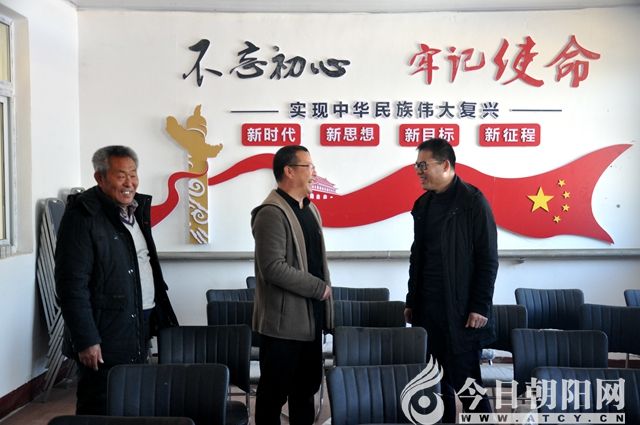 張志江(右)同村領導班子成員研究黨建工作