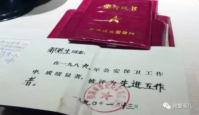 6年完成8年的工作任務(wù),他所在的孟克派出所,先后獲得了與鄒恩生同志有關(guān)的獎旗2面,獎鏡5塊,感謝信、表揚信24封。