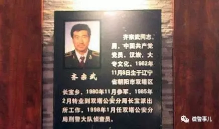 齊宗武,出生在朝陽市的一個偏遠(yuǎn)山村,種過地、當(dāng)過礦工、參過軍,1985年被長寶派出所聘為民警。14年的從警生涯里,齊宗武共破刑事案件500多起,查處治安案件800多件,處理違法犯罪分子上千人。1999年5月19日,在與戰(zhàn)友執(zhí)行一起特大持槍搶劫綁架人質(zhì)案時不幸犧牲,永遠(yuǎn)離開了他熱愛的工作崗位,離開了愛戴他的父老鄉(xiāng)親。
