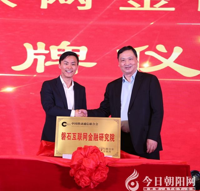 中國移動通信聯(lián)合會執(zhí)行會長倪健中、盤石董事長兼CEO田寧為磐石互聯(lián)網(wǎng)金融研究院揭牌