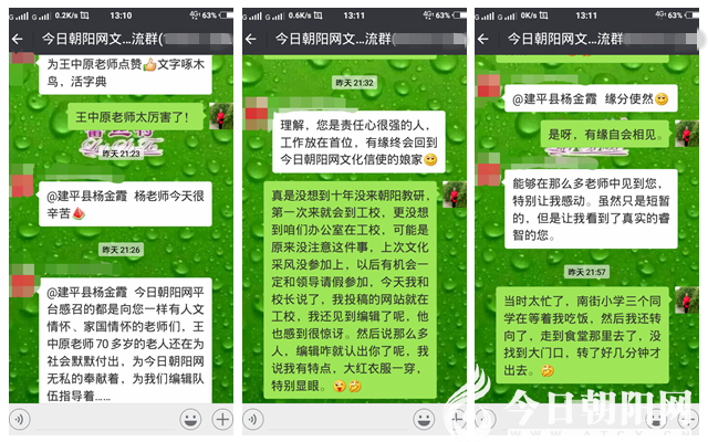 去年秋季,《今日朝陽(yáng)網(wǎng)》邀約各地的部分“文化信使”去工校采風(fēng),食宿全報(bào)銷,可是當(dāng)時(shí)剛剛開學(xué),我也不好意思和領(lǐng)導(dǎo)請(qǐng)假,就沒有報(bào)名,錯(cuò)過了與所有編輯和部分文友見面的機(jī)會(huì),但是我時(shí)刻關(guān)注著群里的動(dòng)態(tài),還偷偷保存了一些照片,雖然未見面,卻能辨認(rèn)出一部分人來(lái)。與部分編輯聊天,他們對(duì)我都非常尊重,我們靠網(wǎng)絡(luò)成了好朋友。