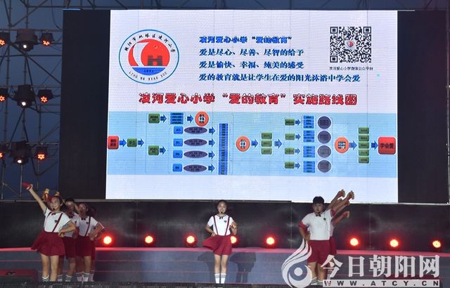 演出前,伴著悅耳的音樂(lè),大屏幕上展示出凌河小學(xué)的發(fā)展歷程。1991年,朝陽(yáng)社會(huì)各界廣泛集資,匯聚愛的力量興建了這所與眾不同的小學(xué)。27年來(lái),學(xué)校歷屆領(lǐng)導(dǎo)班子不忘初心,直面困難,正視不足,把政府的關(guān)懷視為責(zé)任,把教師的使命作為擔(dān)當(dāng),把家長(zhǎng)的信任扛在肩上,把孩子的期盼放在心頭,把愛心人士的幫助化作綿綿不絕的精神力量。針對(duì)本校地處城鄉(xiāng)接合部,農(nóng)民工子女、留守兒童偏多的特點(diǎn),堅(jiān)持讓博愛的陽(yáng)光照進(jìn)每一個(gè)孩子的心靈,把一個(gè)原本羸弱、落后的“袖珍”小學(xué),穩(wěn)健發(fā)展成擁有21個(gè)教學(xué)班、1051名在校生、74位在崗教師,充滿文化力量,充盈陽(yáng)光信息,充溢蓬勃活力的新校園。