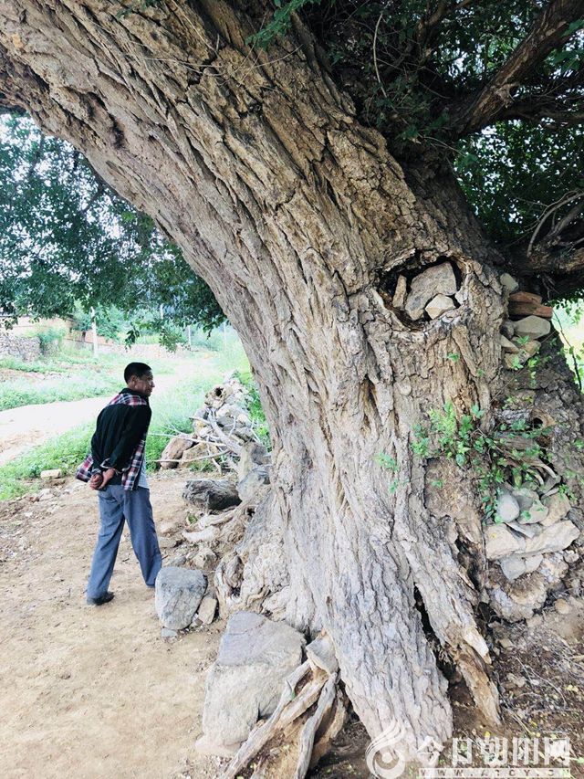采訪中,一棵有著百年樹齡的老榆樹屹立在村子的地頭邊,樹的根深深地扎在了這片讓它賴以生存的泥土中,樹干在一個世紀的生長中歷經(jīng)滄桑,但依然枝頭茂盛,當(dāng)?shù)氐睦习傩照f,它有靈性。因為干旱,周邊幾乎沒有更多的樹木存活,唯有這棵老榆樹遒勁挺拔,它見證了豐山村一代又一代人抗?fàn)幹@里的貧瘠,它的蒼勁和靈性似乎告訴這里的人們,總有一天這里的山一定會豐、樹一定會綠、路一定會有、日子一定會越來越好。
