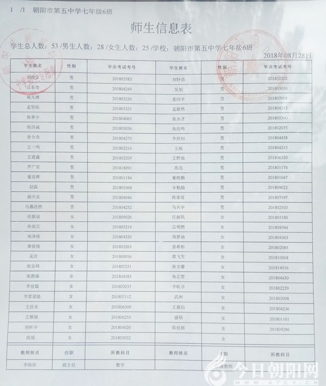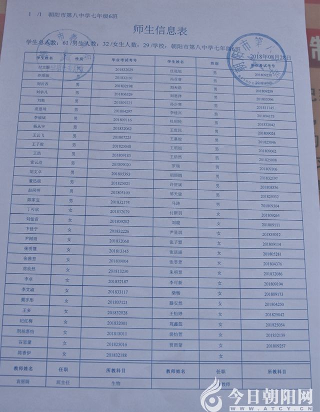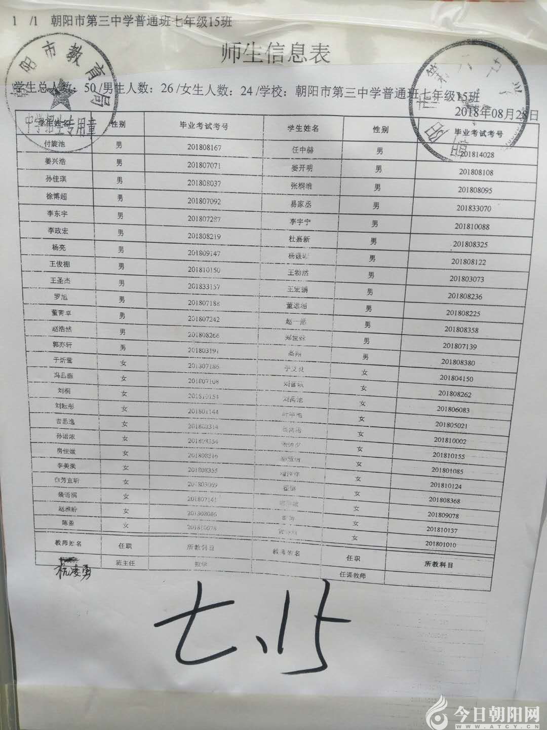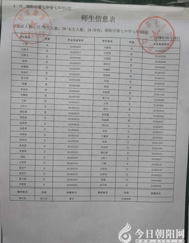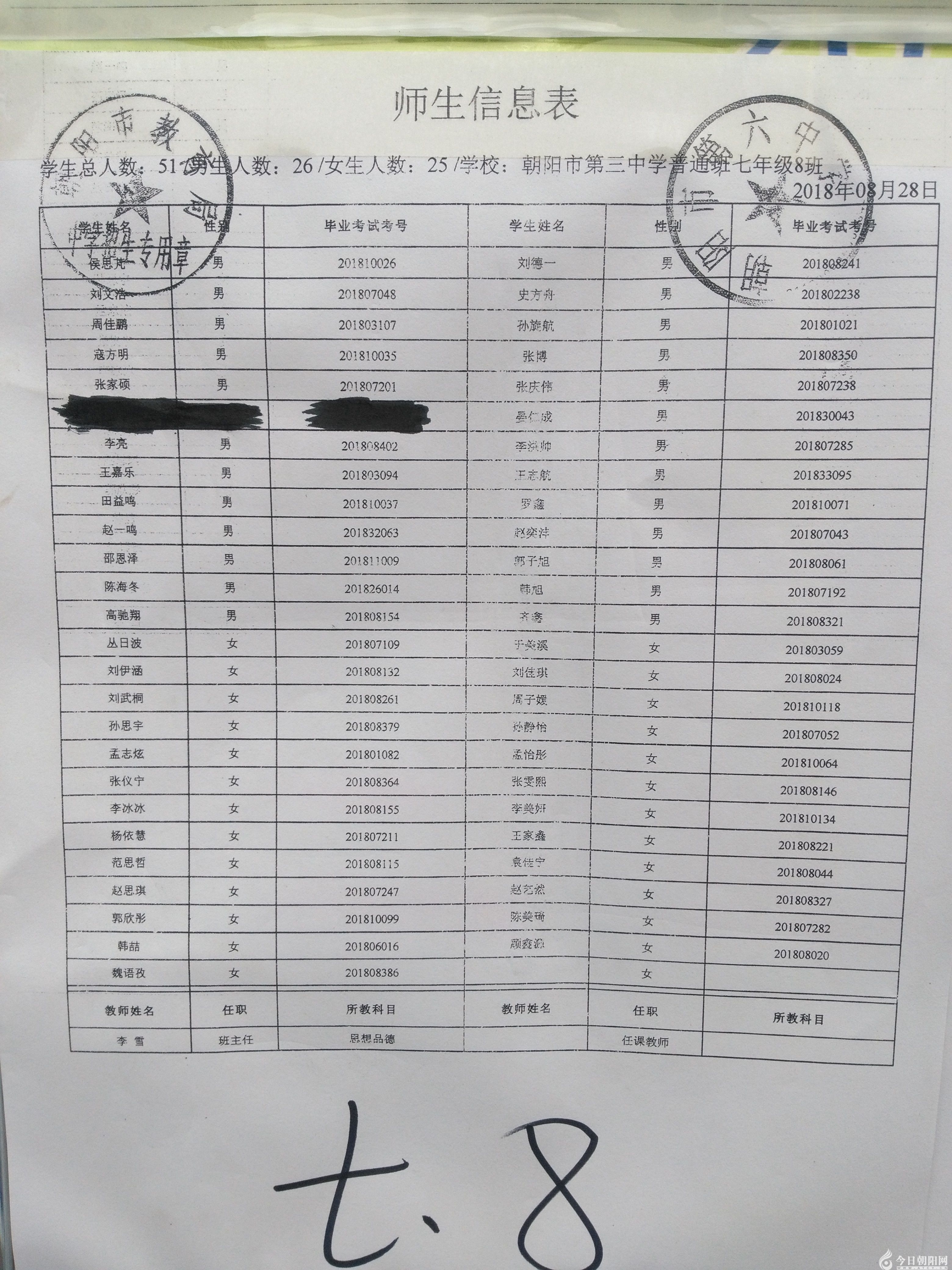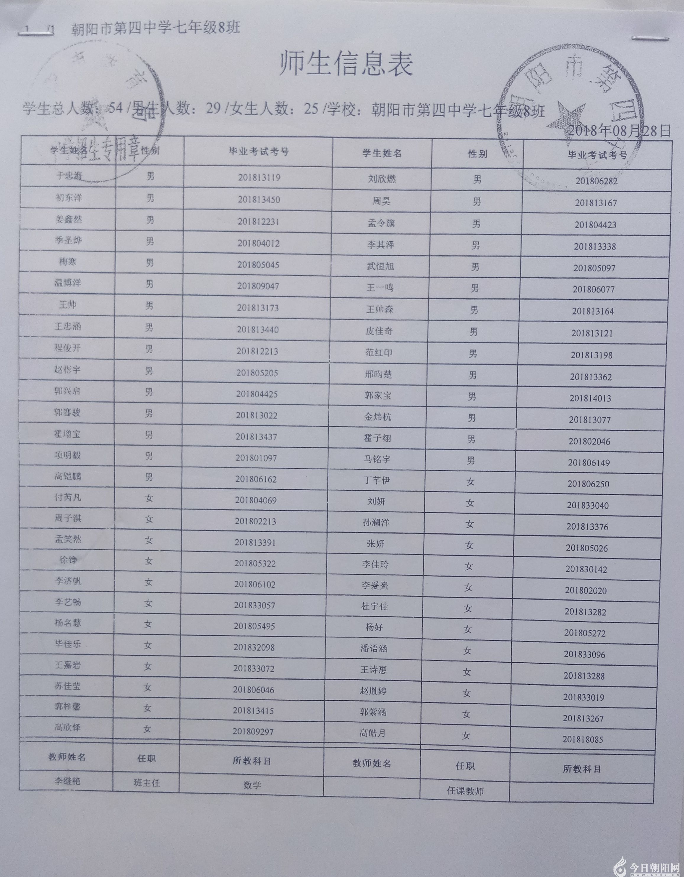 @學(xué)生家長(zhǎng):朝陽(yáng)市局直初中2018年新生分班情況全部出爐(內(nèi)含8所學(xué)校100個(gè)班級(jí))