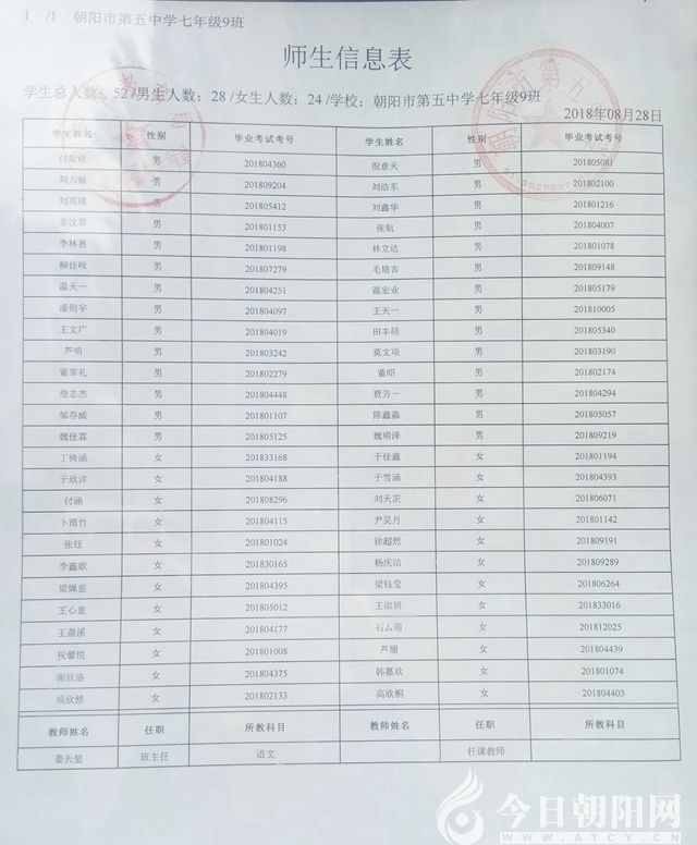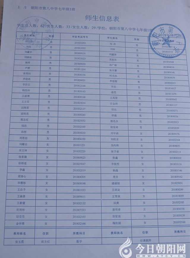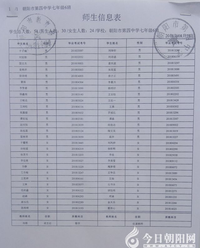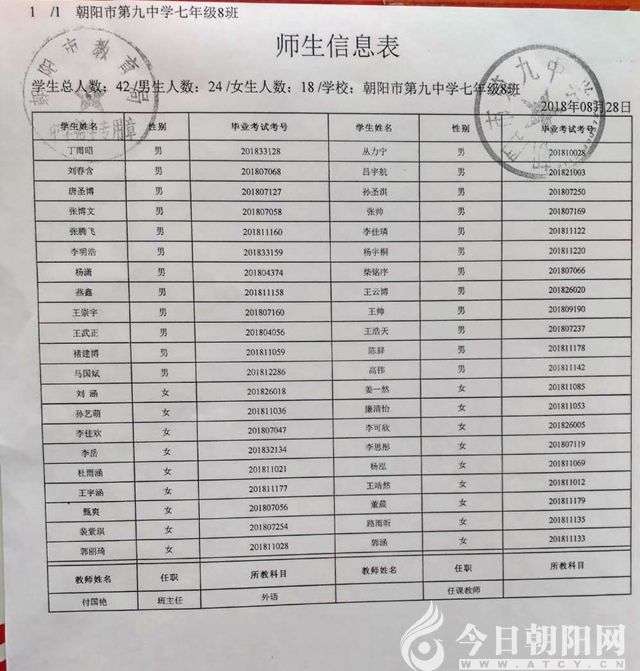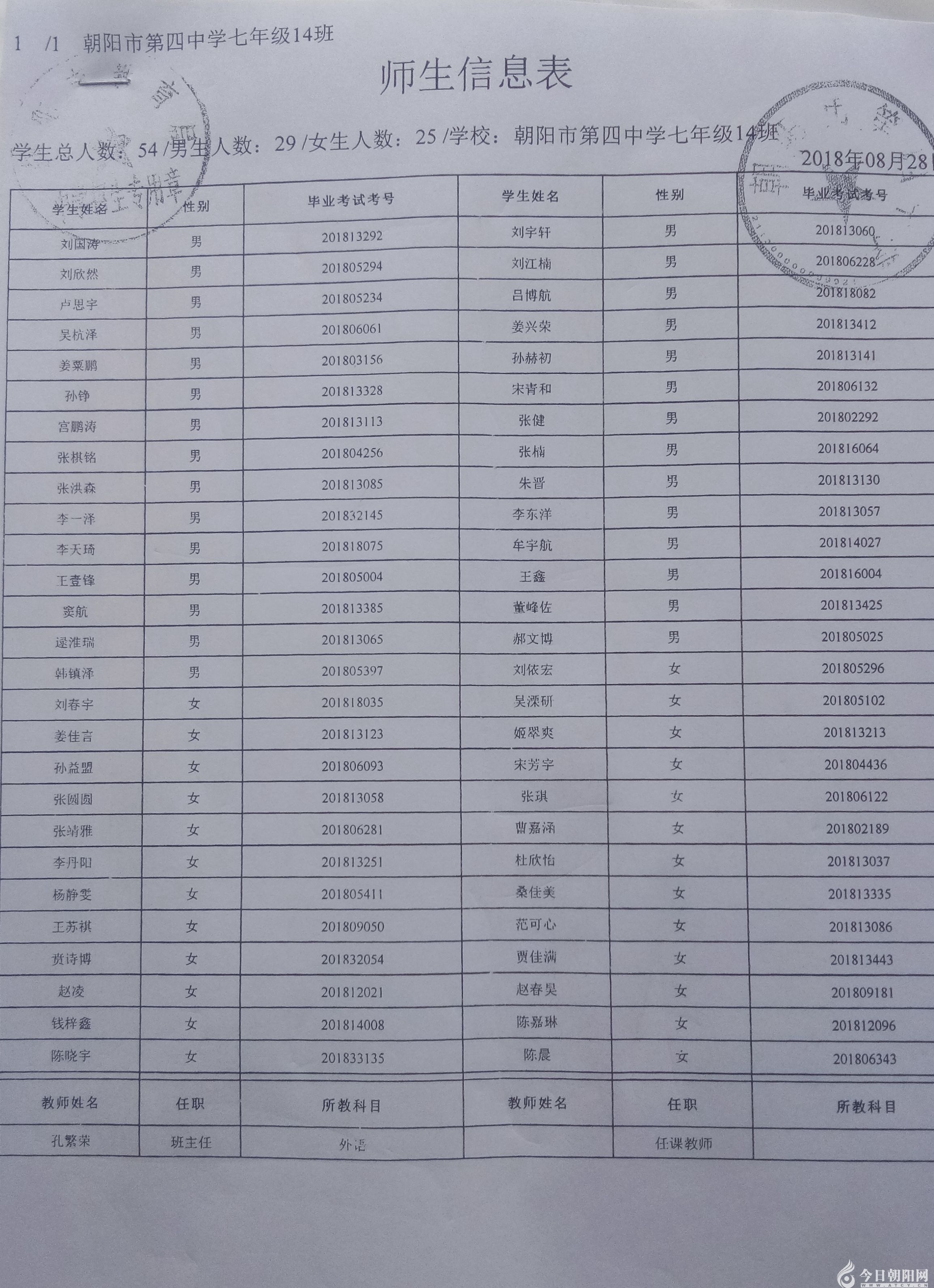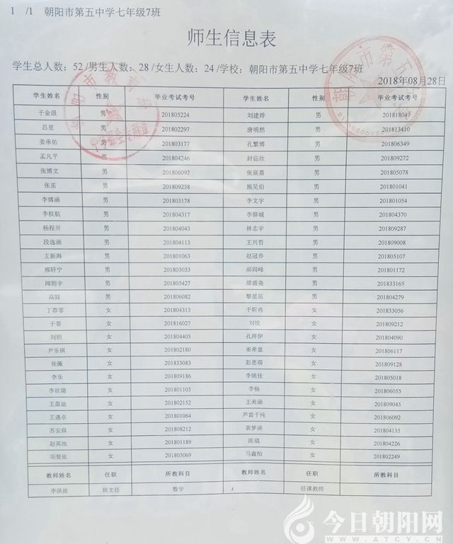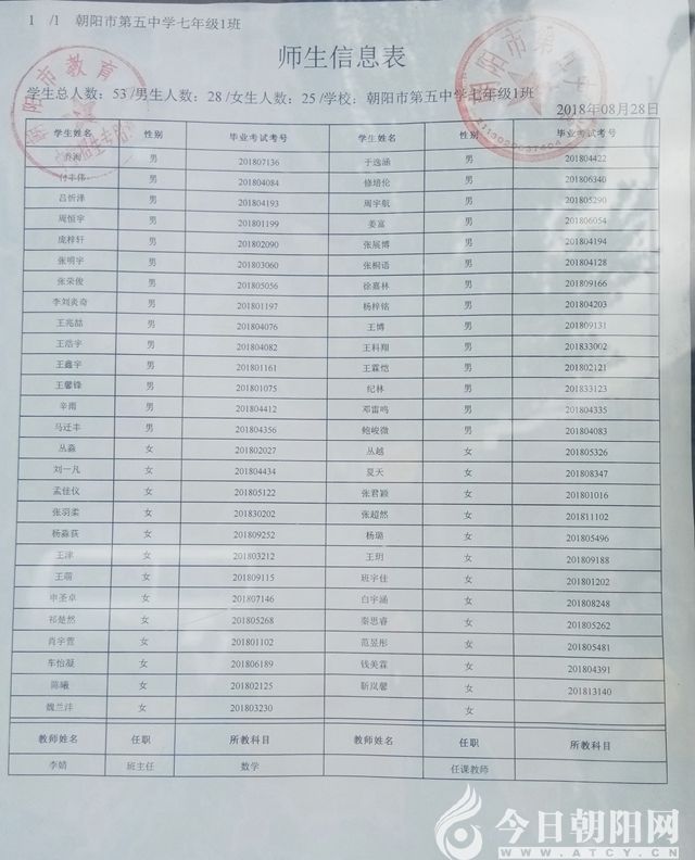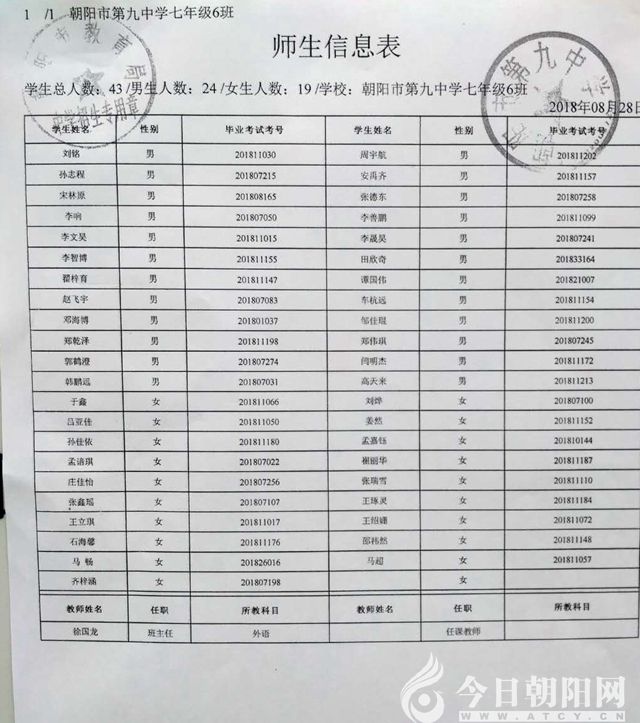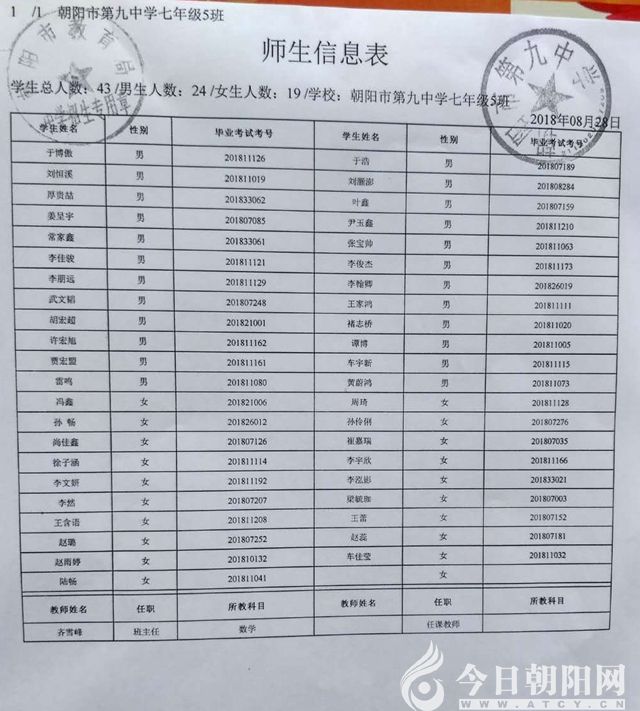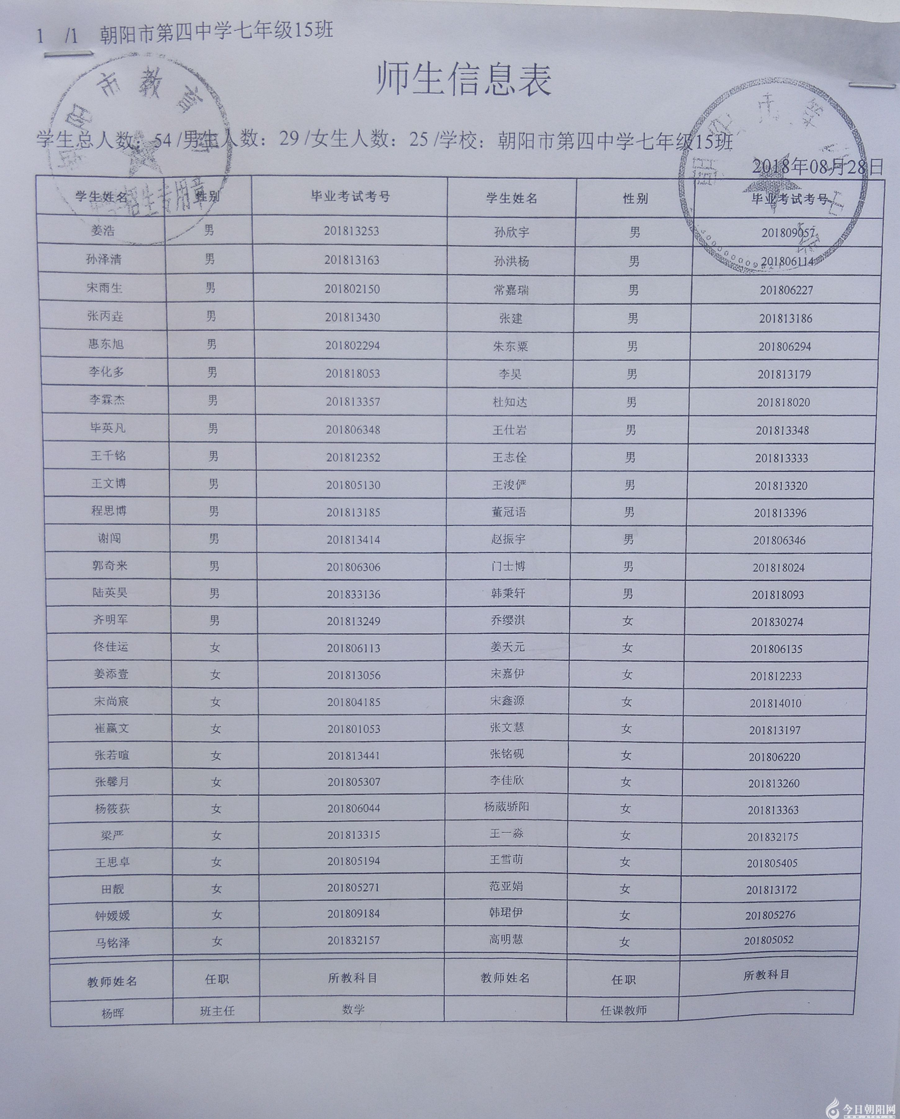 @學(xué)生家長(zhǎng):朝陽(yáng)市局直初中2018年新生分班情況全部出爐(內(nèi)含8所學(xué)校100個(gè)班級(jí))