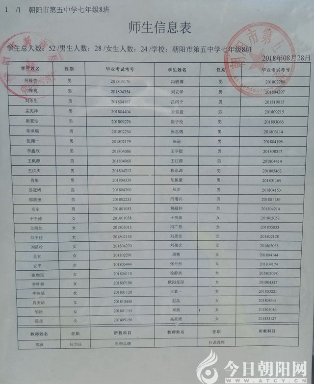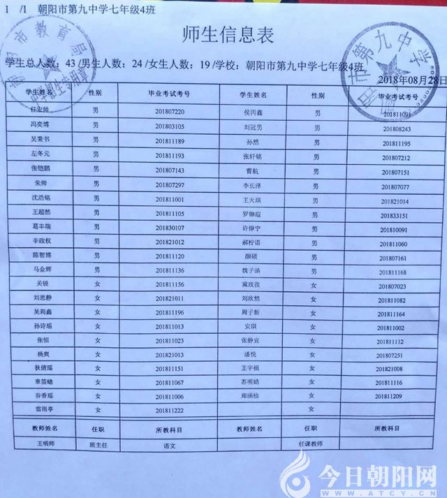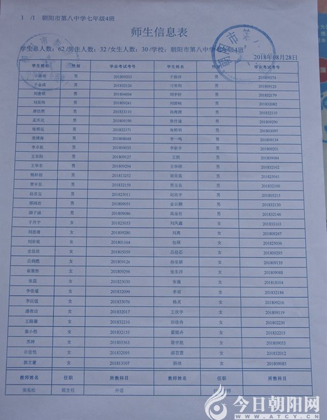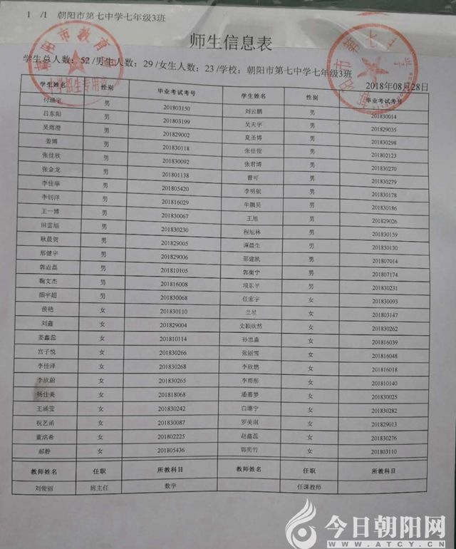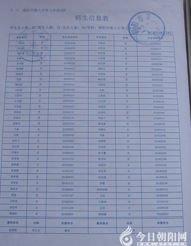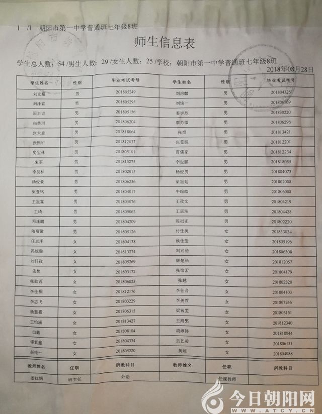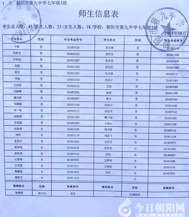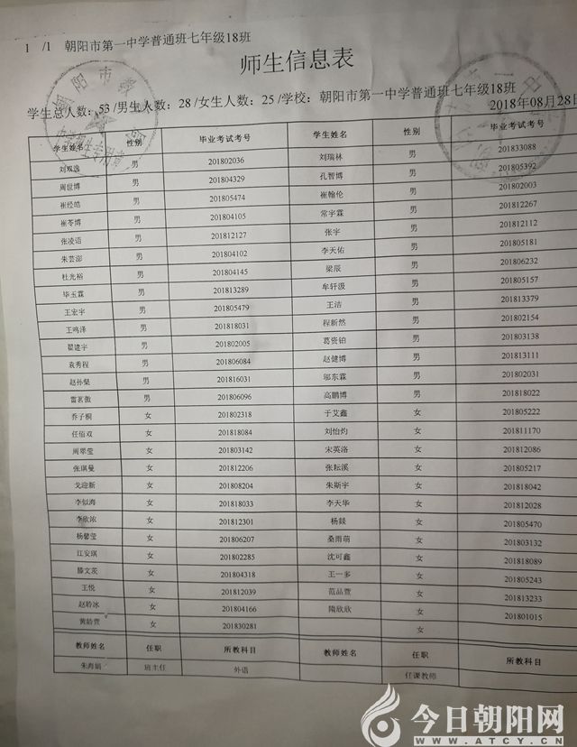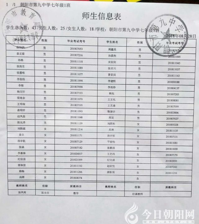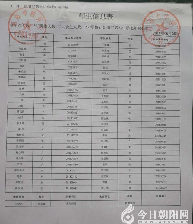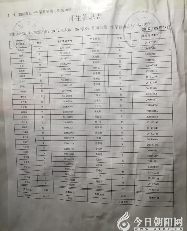 @學(xué)生家長(zhǎng):朝陽(yáng)市局直初中2018年新生分班情況全部出爐(內(nèi)含8所學(xué)校100個(gè)班級(jí))