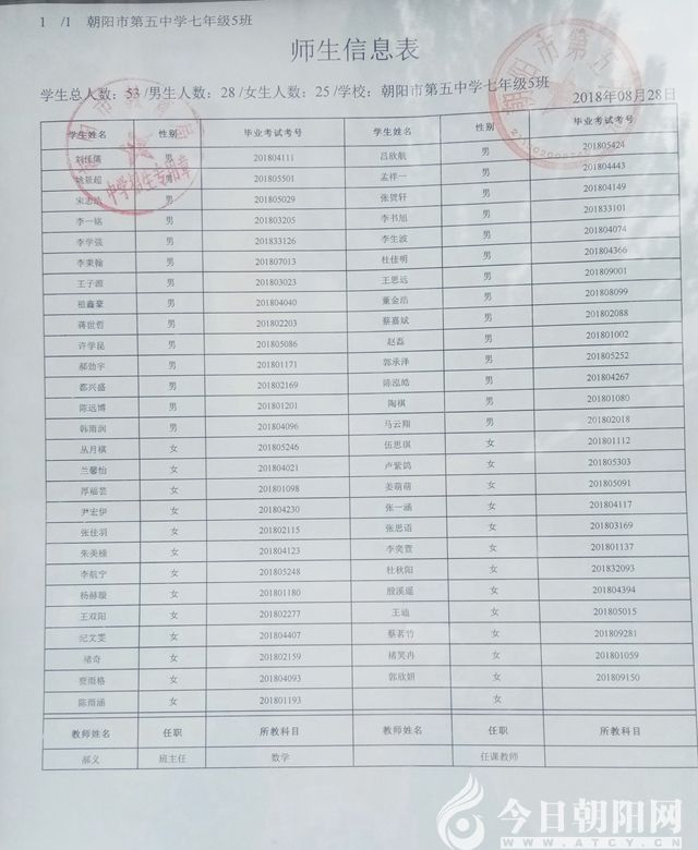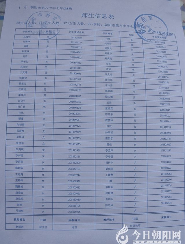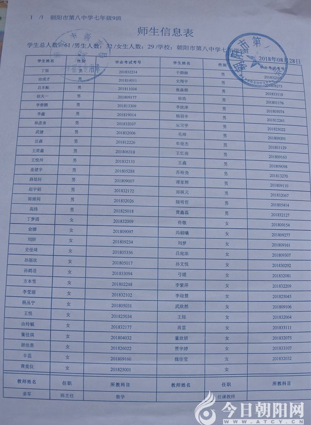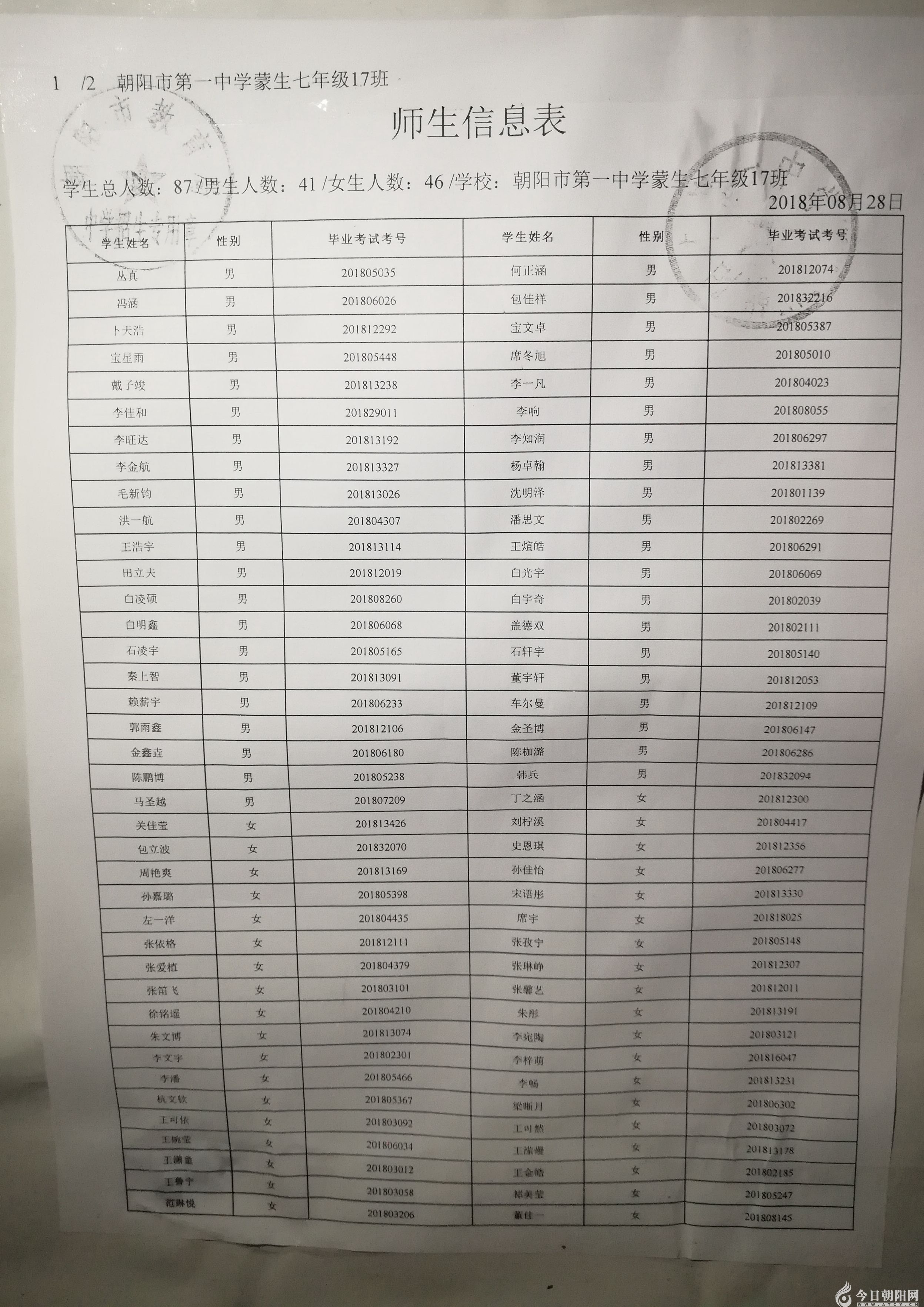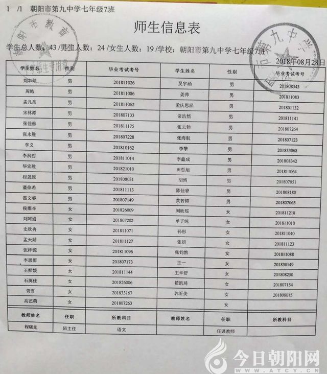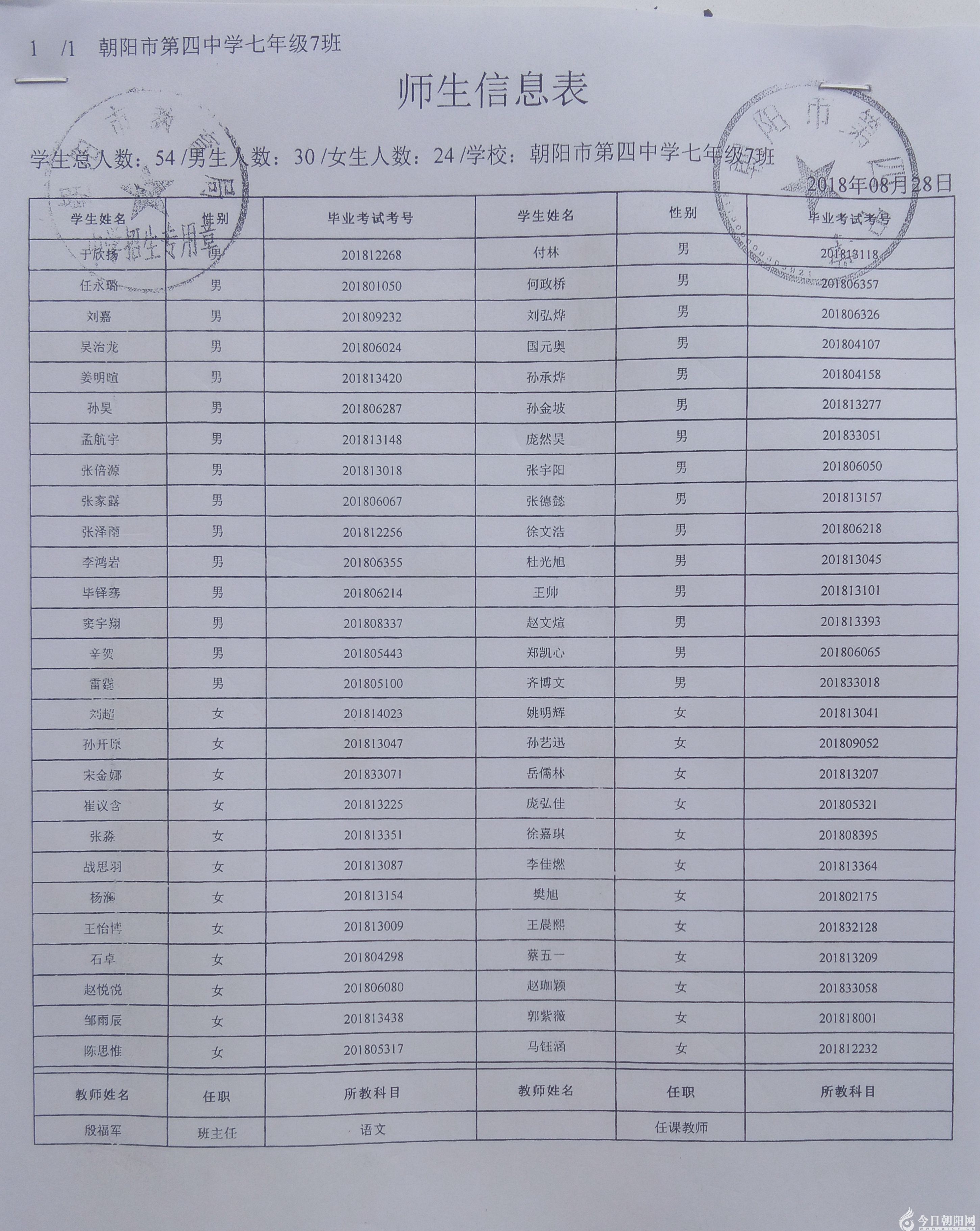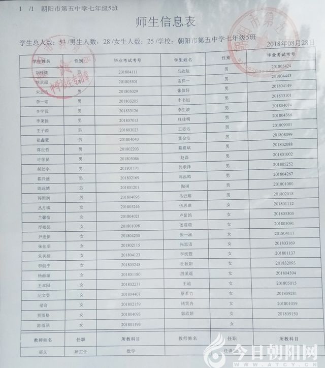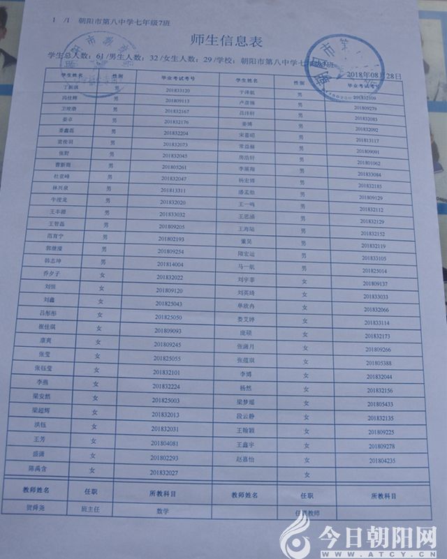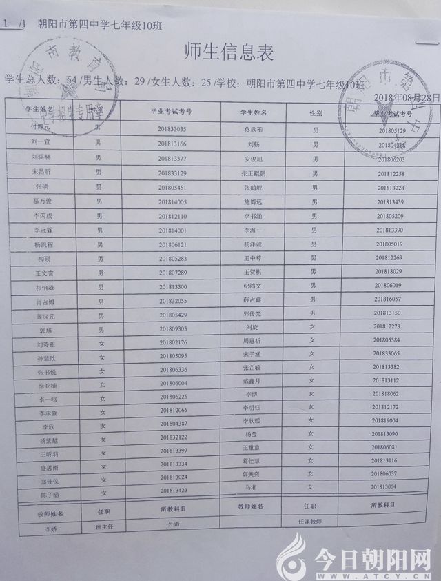 @學(xué)生家長(zhǎng):朝陽(yáng)市局直初中2018年新生分班情況全部出爐(內(nèi)含8所學(xué)校100個(gè)班級(jí))