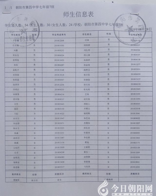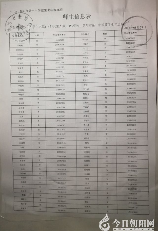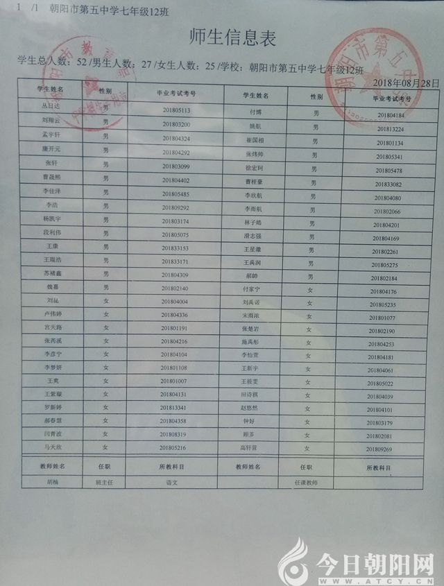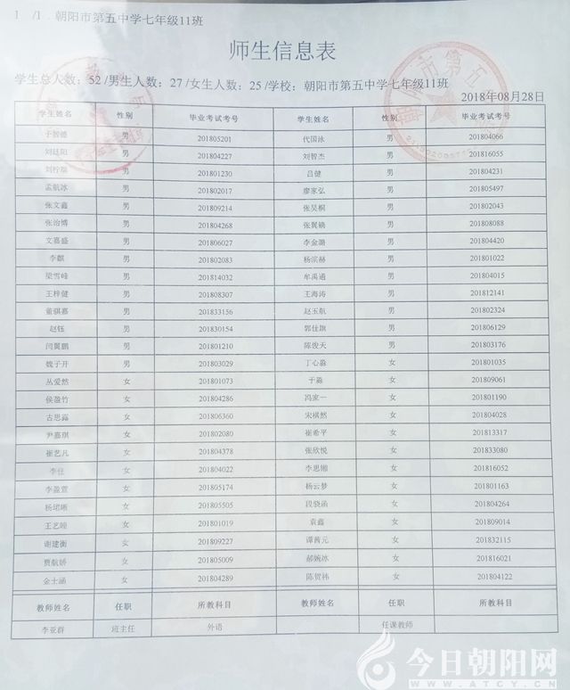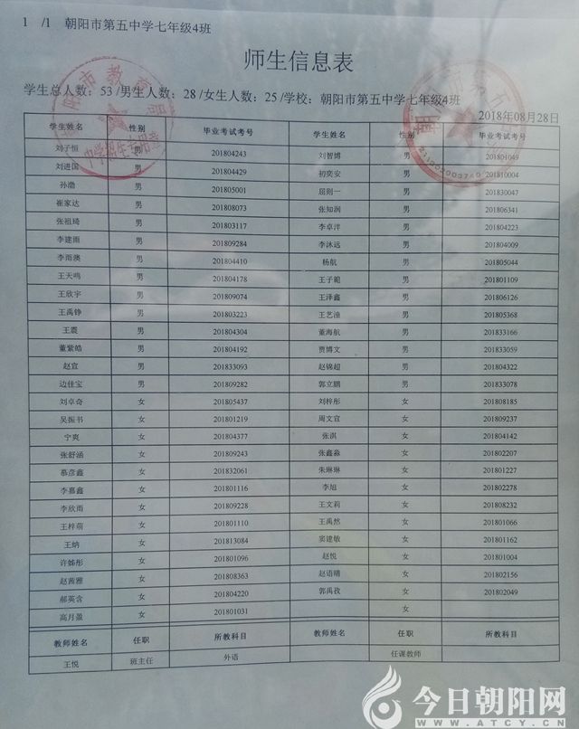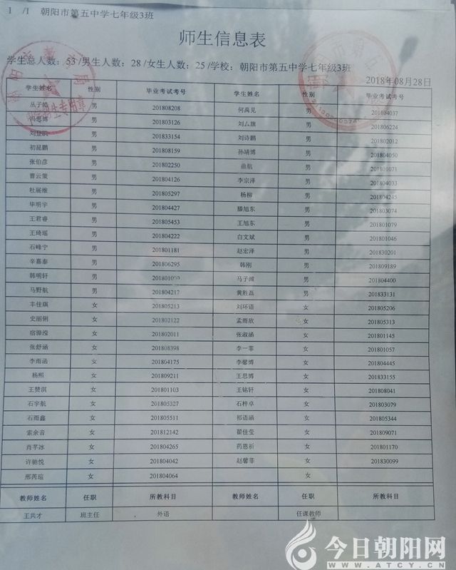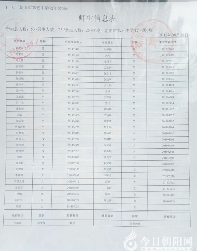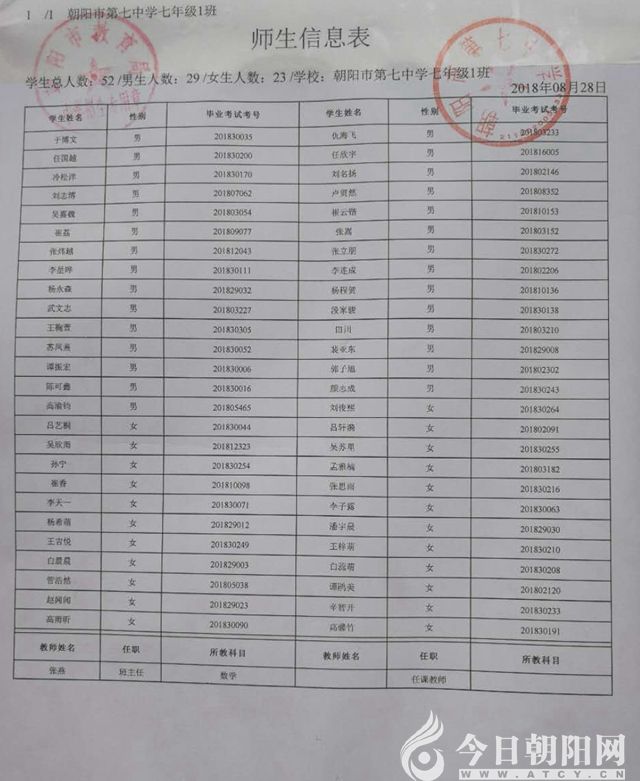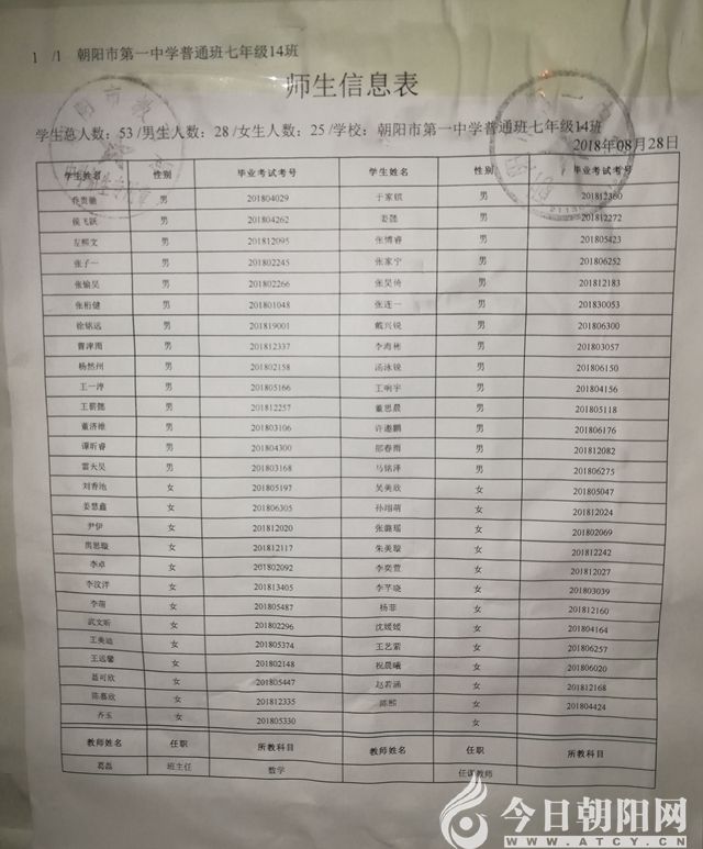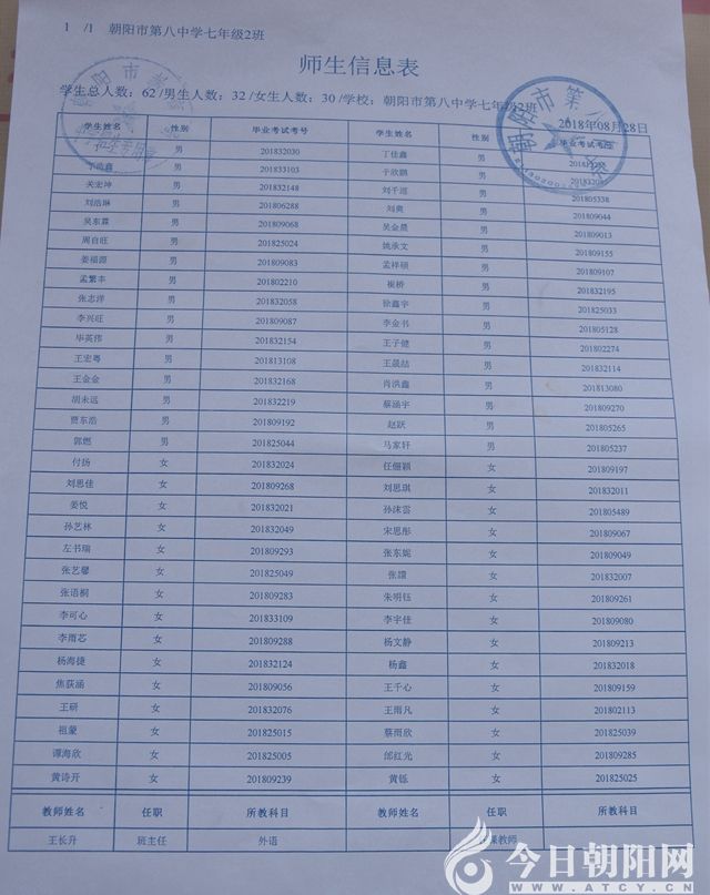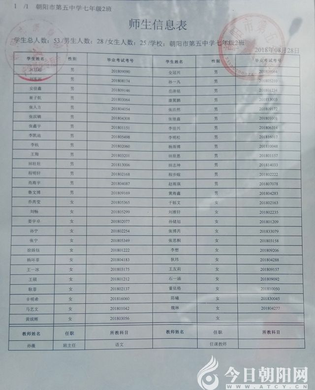 @學(xué)生家長(zhǎng):朝陽(yáng)市局直初中2018年新生分班情況全部出爐(內(nèi)含8所學(xué)校100個(gè)班級(jí))
