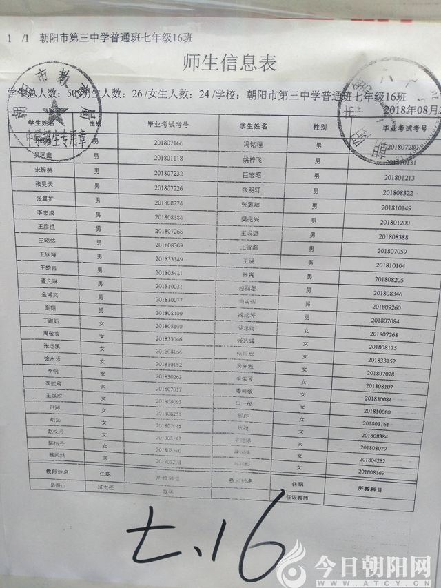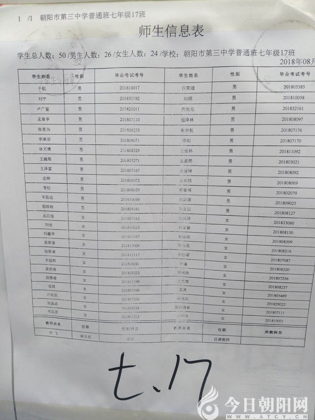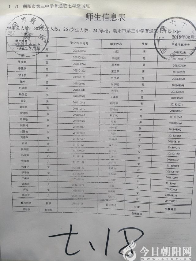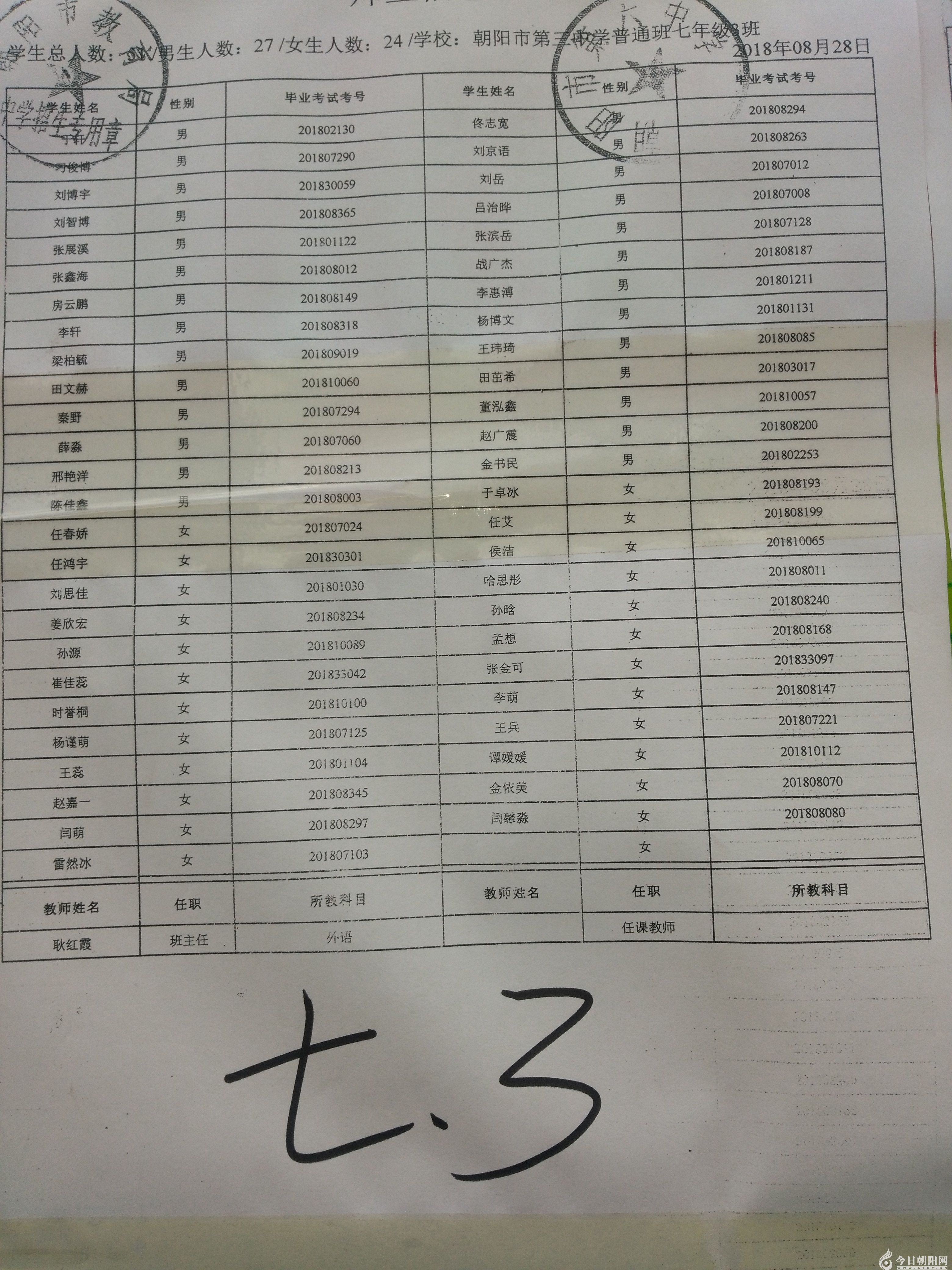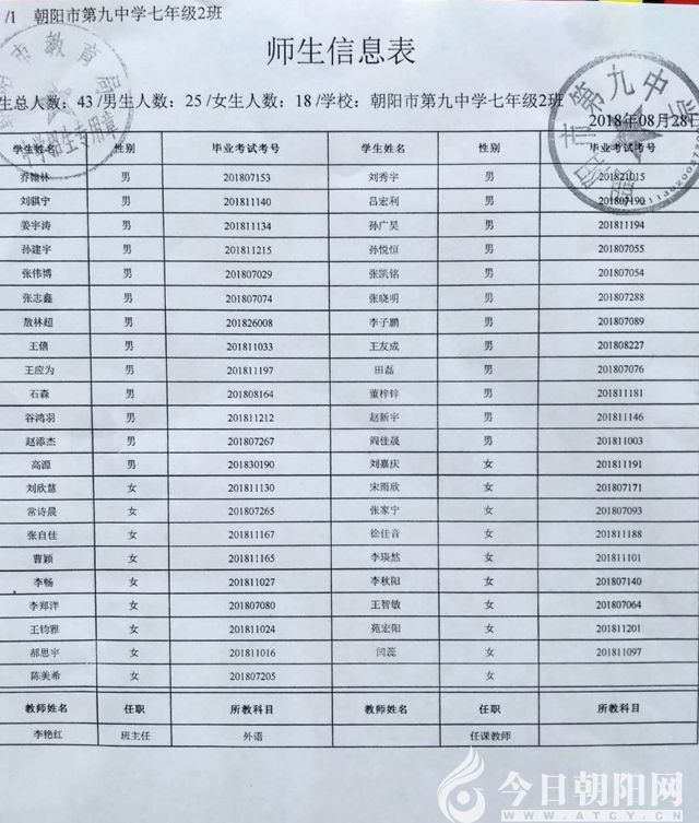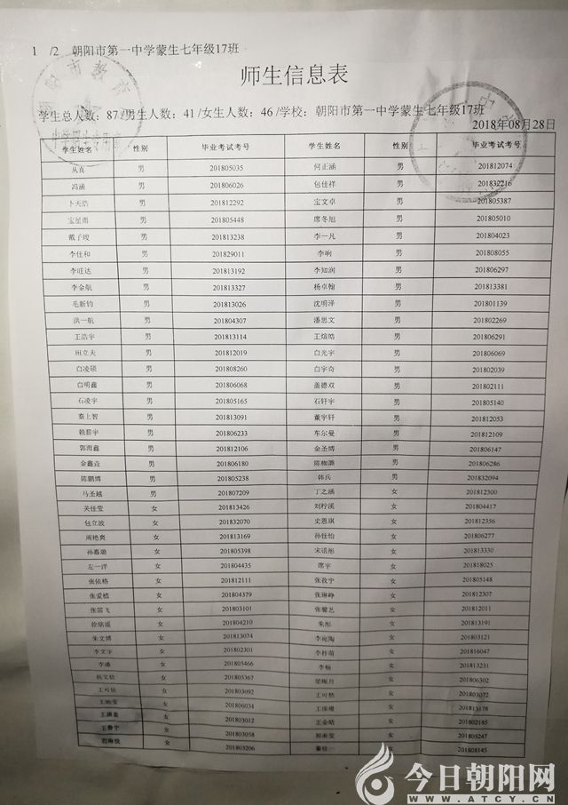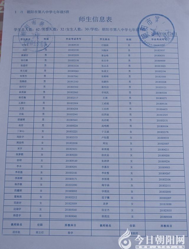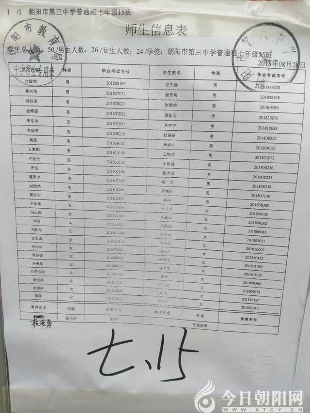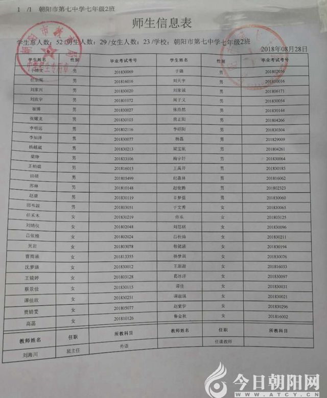 @學(xué)生家長(zhǎng):朝陽(yáng)市局直初中2018年新生分班情況全部出爐(內(nèi)含8所學(xué)校100個(gè)班級(jí))