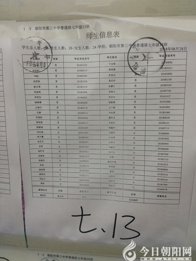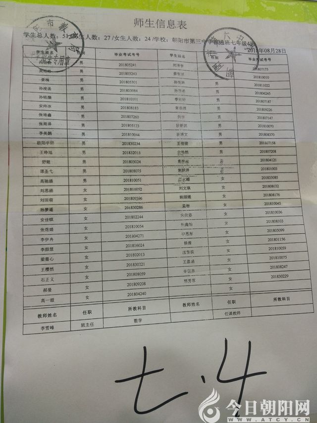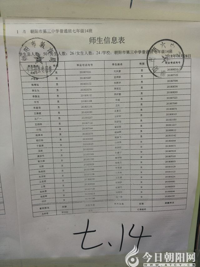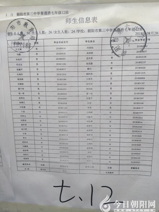 對(duì)于分班結(jié)果,各位學(xué)生家長(zhǎng)都希望能在第一時(shí)間看到。從28日晚間開始,朝陽(yáng)市局直各初中就陸續(xù)開始貼出了分班表,昨晚很多學(xué)生家長(zhǎng)在各學(xué)校外,借著手機(jī)的光亮,耐心查看分班表,尋找孩子的名字。本網(wǎng)小編也來(lái)到各校,將已張貼出來(lái)的分班表拍下,由于天色已晚,光線暗、照片效果不好,只好讓各位家長(zhǎng)費(fèi)點(diǎn)眼神,可以點(diǎn)擊放大查看。如果有模糊不清或者遺漏錯(cuò)誤之處,請(qǐng)到學(xué)校仔細(xì)核對(duì)。本名單已更新完畢。