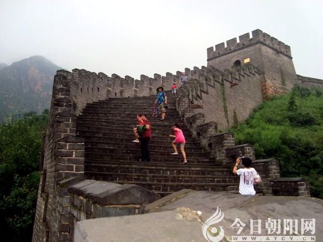 立秋前一天,天灰蒙蒙的。不時飄來的雨絲,驅(qū)走了令人煩躁的暑氣。早8點,我一家八口:我和老伴兒、大兒子和他的兩個女兒、二兒子兒媳和他們的兒子,來到了中外聞名的水上長城九門口。