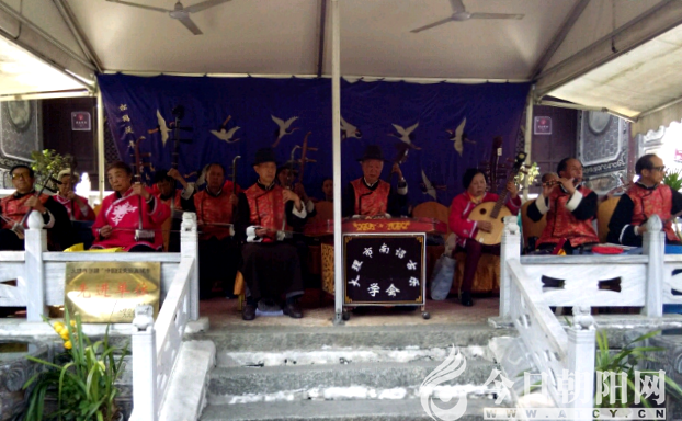成立于1997年的大理南詔古樂學(xué)會(huì),不僅活躍在大理民間,參加一年一度的三月街活動(dòng),還曾為國(guó)家領(lǐng)導(dǎo)人、外國(guó)友人專場(chǎng)演出。1999年7月,國(guó)家旅游局到大理考評(píng),南詔古樂學(xué)會(huì)被評(píng)為全國(guó)首批優(yōu)秀旅游城市先進(jìn)單位。六年前,州旅游集散中心邀請(qǐng)南詔古樂學(xué)會(huì)到大理古城內(nèi)的旅游景點(diǎn)蔣公祠演出,弘揚(yáng)傳承大理優(yōu)秀的古典音樂文化。在會(huì)長(zhǎng)趙天俊的帶領(lǐng)下,26位古稀老人操琴擊鼓、吹打彈拉,每天下午1:30—3:45,在蔣公祠小舞臺(tái)演奏20多首南詔古樂。觀眾陶醉其中翩翩起舞,臺(tái)上臺(tái)下欣喜交融。其中,《奉圣樂》《元皇贊》《浪淘沙》《小桃紅》《南清宮》《南洋州》《食供養(yǎng)》《錦江春》等曲目深受觀眾歡迎。