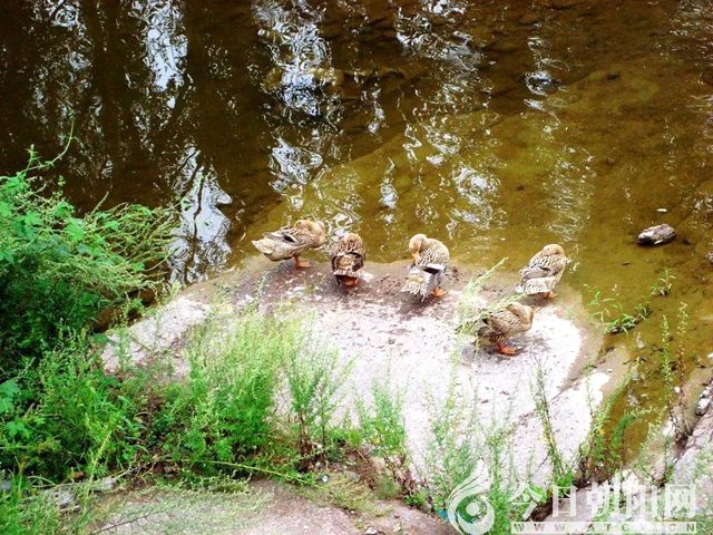 清清溪水,靜靜地流。肥肥的鴨子,棲息在石上,靜謐恬然。山清水秀,人的理想,我推想:也應是生物界的理想吧。