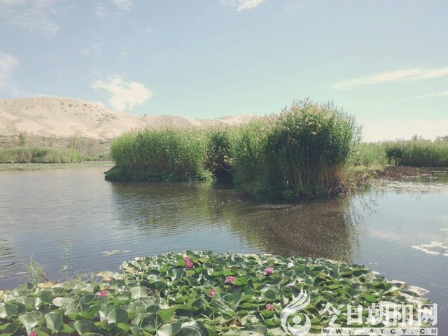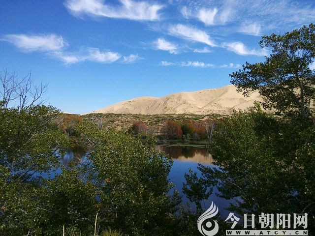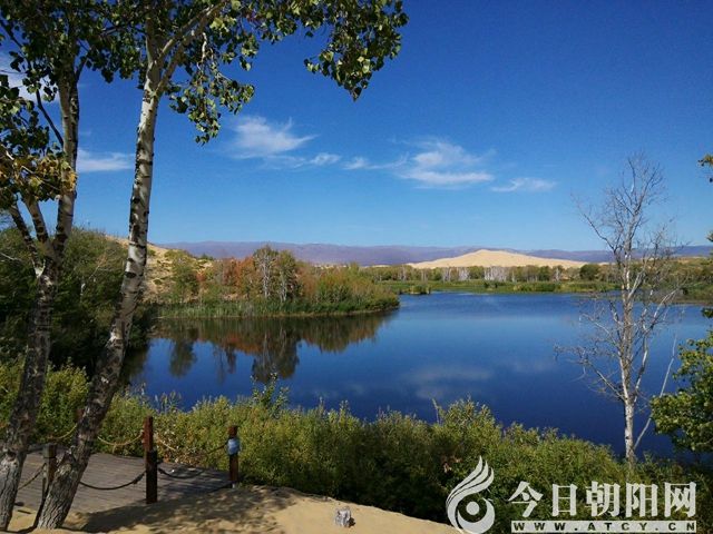 白沙湖很小,位于沙漠之中,海拔650米,南北長(zhǎng)約2100米,東西寬1300米,被稱(chēng)為“沙漠奇景”,水面約10公頃。一怪無(wú)論春秋冬夏,湖水始終不增不減,不凝不濁;二怪植物多樣。湖心、湖岸和湖周生長(zhǎng)著反差極大的氣候及生態(tài)環(huán)境下的多種植被、半干旱灌木叢植被,讓人不解。我們來(lái)時(shí),白沙湖仍有蓮花數(shù)朵,水草茂盛,紅黃樹(shù)葉,已在風(fēng)中招展。遠(yuǎn)處,天空碧藍(lán),羽毛狀的片片云朵隨風(fēng)追逐,不斷變換,沙湖綠水與綿延不斷的沙丘相接,岸上的樺樹(shù)林從遠(yuǎn)處慢慢地“走”來(lái),一直“走”進(jìn)沙湖盛滿碧水的“沙盆”里,倒映著蜿蜒的沙脊和紅黃白綠交織的樹(shù)影,倒映著藍(lán)天和白云,倒映著層層疊疊層林盡染的秀美。