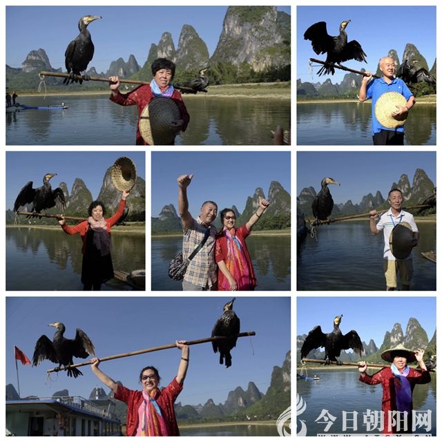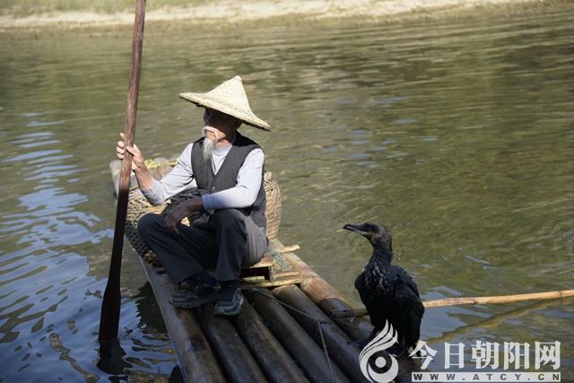 游船沒走多遠(yuǎn),一漁翁乘竹筏子上了游船,漁翁肩上扛著一對鸕鶿,他是給大家送拍照道具的。游船此時已經(jīng)停了下來,這是一個攝影景點,不過老人的道具不白用,給5元人民幣就行。