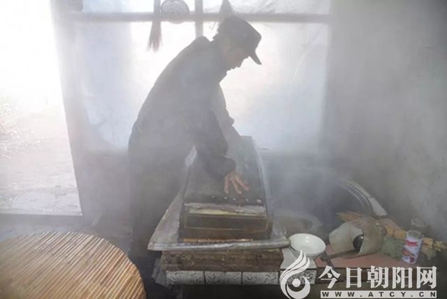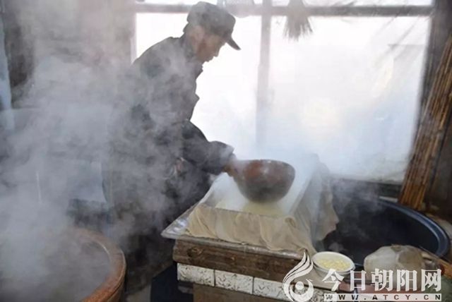把豆腐腦一瓢一瓢?到已經(jīng)鋪好豆腐包的篩子里,然后蓋好,上面放上高粱秸的簾子,簾子上再壓上一塊長(zhǎng)石條。大約15分鐘,做豆腐的整個(gè)過程才算結(jié)束。