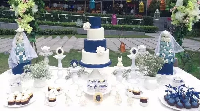 一次,在一位朋友的婚禮上,雪兒設(shè)計(jì)了一款以英倫風(fēng)鮮花為主題的婚禮蛋糕。采用英倫經(jīng)典色調(diào)藍(lán)紅搭配,讓人宛如置身鮮花農(nóng)場一般。