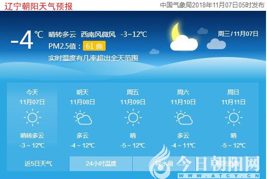 今天立冬了。立,建始也,表示冬季自此開始;冬是終了的意思,有農(nóng)作物收割后要收藏起來的含意。立冬過后,日照時間將繼續(xù)縮短,正午太陽高度繼續(xù)降低。今天(11月7日),遼寧朝陽晴轉(zhuǎn)多云,氣溫-3~12℃,西南風(fēng)微風(fēng),空氣質(zhì)量良好。進入冬季,晝夜溫差很大,易發(fā)生感冒,請網(wǎng)友們注意適當增減衣服,加強自我防護避免感冒。