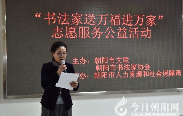 1月26日,農(nóng)歷臘月初十,由遼寧省朝陽市文聯(lián)、市書法家協(xié)會主辦,市人力資源和社會保障局承辦的“書法家送萬福進(jìn)萬家”志愿服務(wù)公益活動啟動儀式在朝陽勞動大廈4樓大廳舉行。