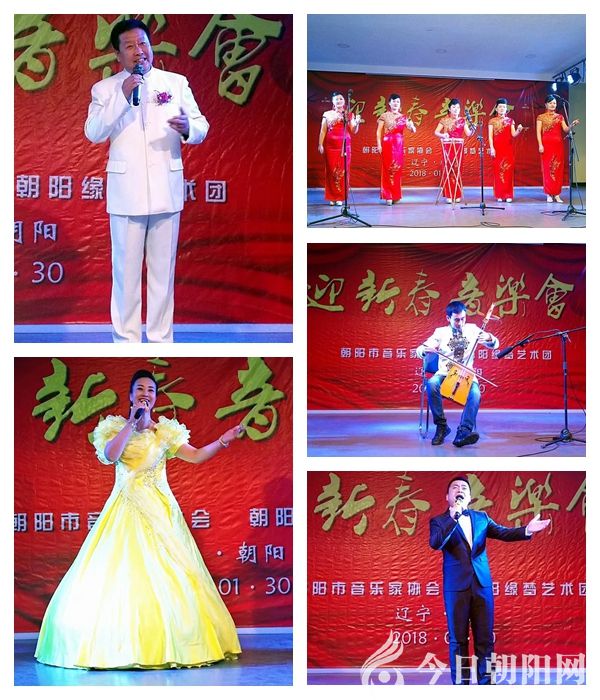 來自朝陽市音樂家協(xié)會聲樂工作委員會的“美之韻”聲樂沙龍的歌手、緣夢藝術(shù)團(tuán)合唱隊、管樂隊、紅葉舞蹈團(tuán)的演員歡聚一堂,迎接2018年春節(jié)。