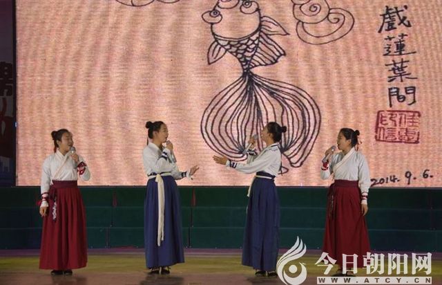 此次活動,由吳學軍、付瑤、矯偉麗三位教師及張均千、王宇生、朱家慧三位學生擔任主持人。朝陽市雙塔區(qū)音樂家協(xié)會理事、朝陽三高音樂組教師付瑤作開場表演,用歌聲唱出了《沁園春·雪》的豪邁。一年一班、一年六班的幾位學生的《少年中國說》,歌頌少年的朝氣蓬勃,振奮人心?!渡骄忧镪浴贰栋最^吟》《虞美人》等經(jīng)典古詩詞聯(lián)唱,更是精彩紛呈。朝陽市雙塔區(qū)音樂家協(xié)會理事韓天曉、朝陽縣文廣新局業(yè)務(wù)科科長王甲華作為特邀來賓,分別表演了《但愿人長久》和《枉凝眉》。