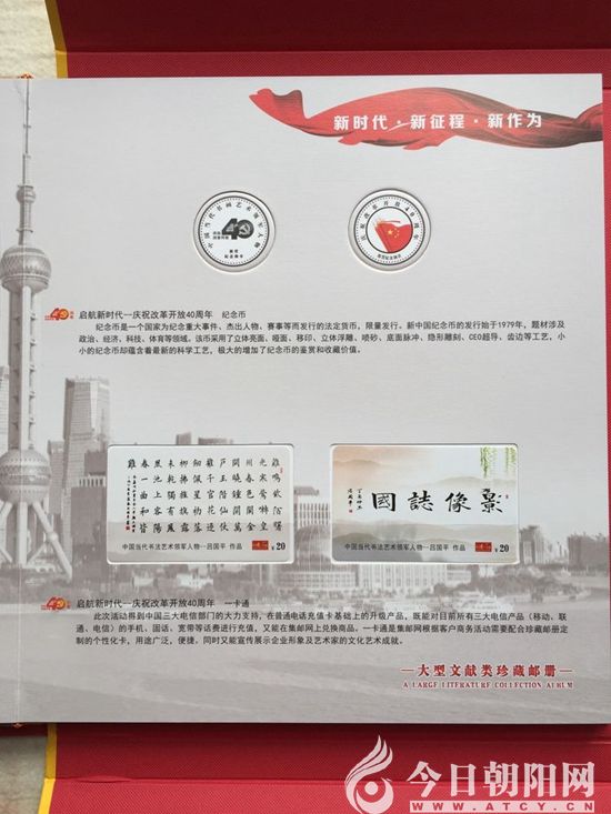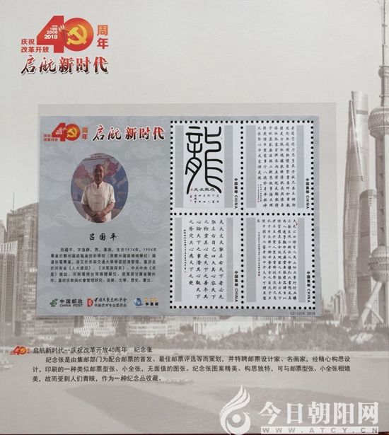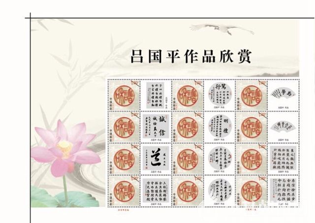 由文化部中國大眾文化學(xué)會書畫藝術(shù)專委會和中國國際集郵網(wǎng)聯(lián)合選定,國家郵政局審批,北京郵票廠印制,中國國際集郵網(wǎng)發(fā)行的《啟航新時代——慶祝改革開放40周年 中國當(dāng)代書畫藝術(shù)領(lǐng)軍人物呂國平》紀(jì)念珍藏郵冊即將出版發(fā)行,該珍藏郵冊包含了作者書法作品一整版12枚郵票;3張面值為20元共60元的一卡通電話卡(大小材質(zhì)同銀行卡相同,移動、聯(lián)通、電信均可充值使用);1枚慶祝改革開放40周年金屬郵票;2枚有作者肖像的作品紀(jì)念張;2枚慶祝改革開放40周年銀質(zhì)紀(jì)念幣;1枚改革開放40周年首日封;1枚有作者作品及簡介明信片;1枚收藏證書。
