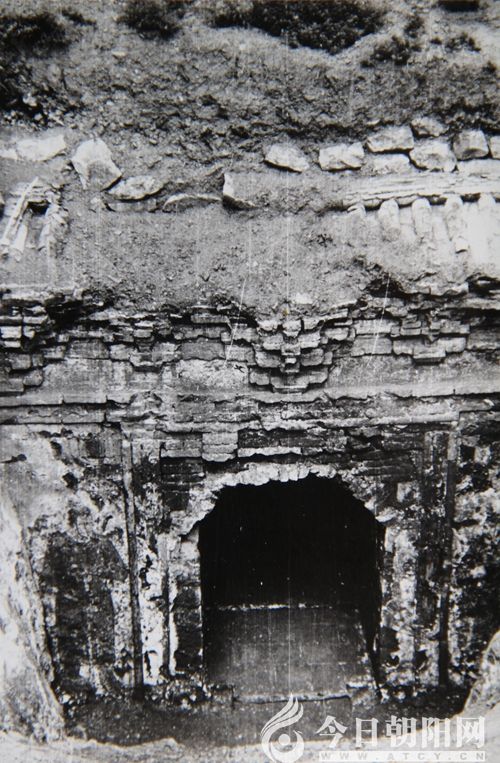 上世紀(jì)六七十年代,遼耶律仁先墓發(fā)掘露出的墓門 (馮永謙 攝)