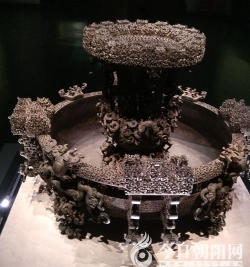 這是一套尊盤。尊置于盤,盤捧出尊。夏則盤中置冰,尊中冰酒沁涼。冬則盤中盛湯,尊中溫酒幽香。這尊酒,有八十四條龍、八十條蟠螭護(hù)持。