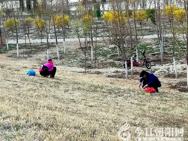 正值青春年少的我不禁醉在其中。我左臂懸筐,右手弄鏟,蹲步慢移,挖起了路邊的野菜??嗦椴?、曲麻菜、婆婆丁、車前菜、水芹菜、白屈菜……春季,人往往內(nèi)燥容易上火,恰好吃食這大自然的恩賜來去火除疾。洗凈留根,卷進媽媽攤的煎餅里,是不可多得的人間美味。心里想著這些野菜的妙處,手也不覺間更加勤快起來,不多時,各種“良方美味”齊聚一筐,滿滿外溢,用手輕按幾下,再挖再續(xù)厚厚一層。