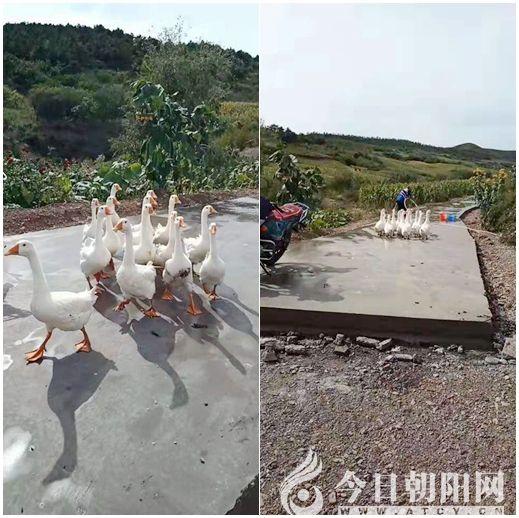 隨著時(shí)間的流逝,路越修越長(zhǎng)。愛(ài)人怕修好的路面有開(kāi)縫,每天都細(xì)心養(yǎng)護(hù)路面。長(zhǎng)長(zhǎng)的水管,飛濺的水花,在晚霞的映襯下,像美麗的花瓣雨,那么美!家里的幾十只鵝,高興地在路面上,張開(kāi)翅膀奔跑著,鳴叫著……