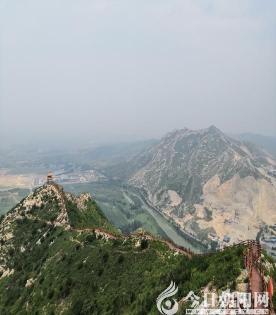 幾乎是爬著轉(zhuǎn)過幾個(gè)直立的拐角,眼前一亮,終于到達(dá)第二座涼亭。登泰山而小魯,站得高,看得遠(yuǎn),豁然開朗。東顧,縣城輪廓分明,大凌河像哈達(dá)飄拂遠(yuǎn)去,一條寬闊的黑色路面傍河行走,車輛穿梭,植樹的,河道上建設(shè)新景觀的,螞蟻般辛勤,喀左全域發(fā)展旅游的綠色思路顯現(xiàn)出來。再看腳下,敖木倫河湖、濕地、河中島、木棧道隱現(xiàn)于山光水色中,綠林擁河,碧水潤(rùn)林,麗景映水的生態(tài)景觀,響應(yīng)著對(duì)面王子山懸崖上,那大大的福字,紅得驚心動(dòng)魄,勾畫著幸福美好的愿景。