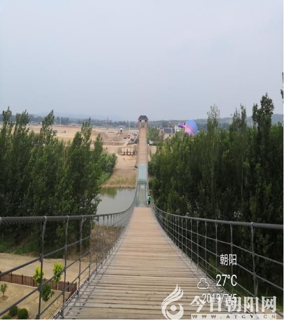 我調(diào)整手機(jī)拍照水印功能,顯示今天是2019年7月5日,朝陽,陰雨,27℃。步入水上木棧道,曲曲折折,三百多米,不長(zhǎng),卻移步有景,岸邊蘆葦輕搖,水柳葳蕤,蒲棒張揚(yáng),綠意婆娑,波瀾不驚的七八十米寬水面上,一群白鵝、麻鴨,分成幾路橫隊(duì),慢悠悠地在兩岸往返游動(dòng),撥開水面,蕩出漣漪,一幅清新雅致涼爽的盛夏戲水圖于無聲中畫就。前行楊柳遮地,蒿草沒人,密不透風(fēng),樹稍篩下幾縷陽光,風(fēng)兒走過,灑下金黃的陽光,暖人。