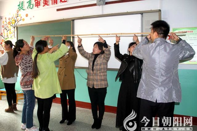 大家認(rèn)真研究了對(duì)策,制定了幾套方案:第一種方案是大家一起喊口令,再一步一步往下移動(dòng),可在移動(dòng)的過(guò)程中還是有人的手指離開(kāi)了齊眉棍;于是實(shí)施第二種方案,兩邊的人統(tǒng)一喊口令,大家一起慢慢往下移動(dòng),可齊眉棍又失去了水平;大家又嘗試了第三、第四種方案……把大家累得滿頭大汗,甚至還出現(xiàn)了抱怨聲……