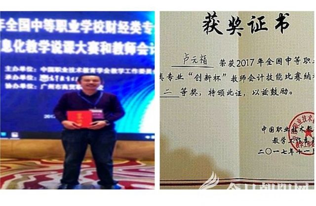 在2017年全國中等職業(yè)學(xué)校財經(jīng)類專業(yè)“創(chuàng)新杯”教師會計技能比賽納稅實務(wù)項目中,學(xué)校優(yōu)秀教師盧元福榮獲國家二等獎。榮譽的背后,是他不懈的努力和學(xué)校的鼎力支持。