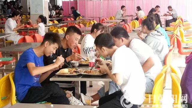 臨近中午,報到的學(xué)生和家長依舊絡(luò)繹不絕。學(xué)??紤]有遠(yuǎn)道而來的家長,下午辦完入學(xué)手續(xù),還要返程回家,另外也可以更加直觀地看到自家孩子在學(xué)校的伙食,為此學(xué)校為學(xué)生和家長提供了免費的午餐,干凈整潔的就餐環(huán)境及伙食科工作人員的熱情服務(wù),讓家長更加放心孩子在學(xué)校的飲食。