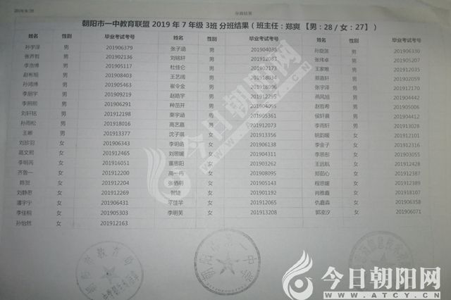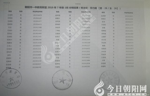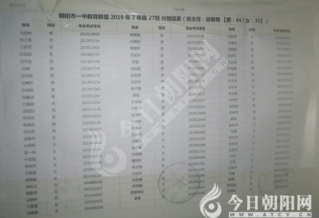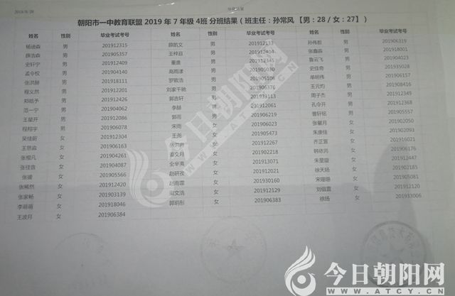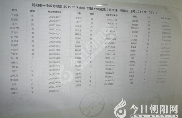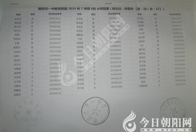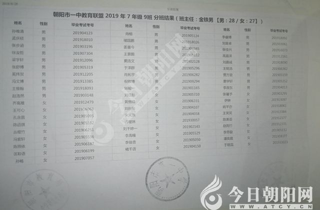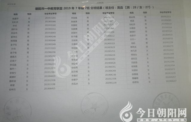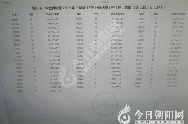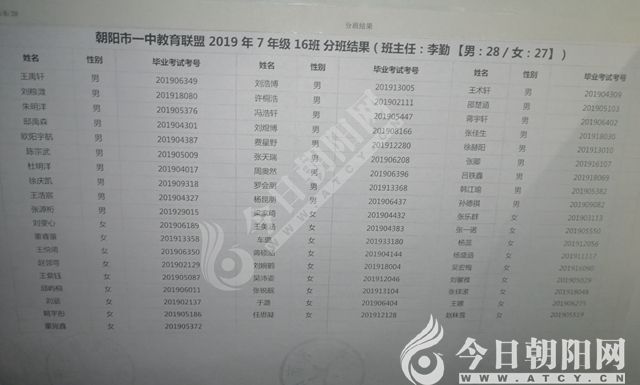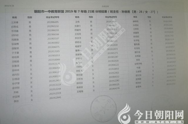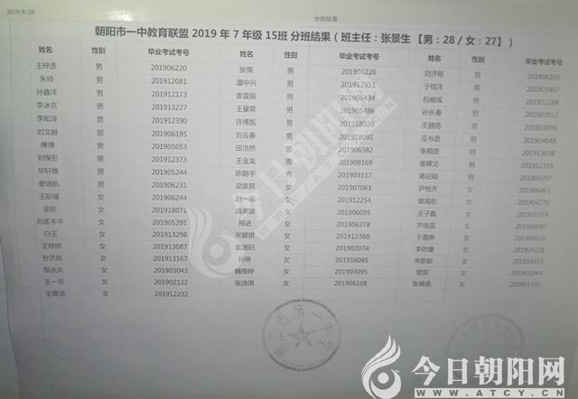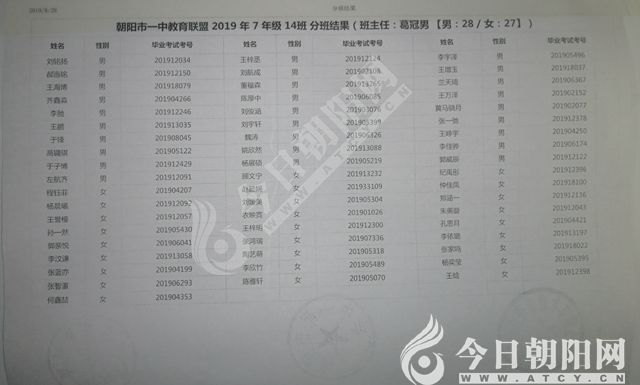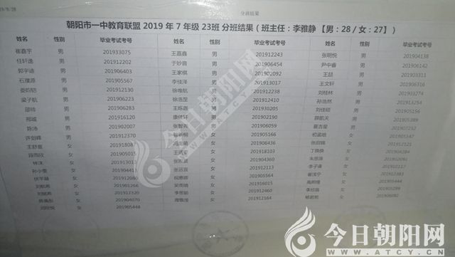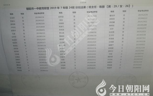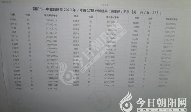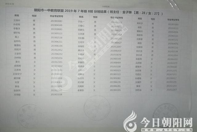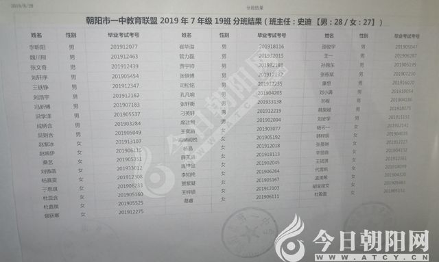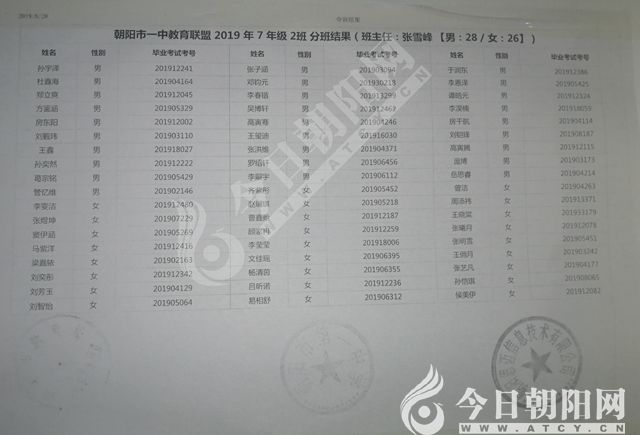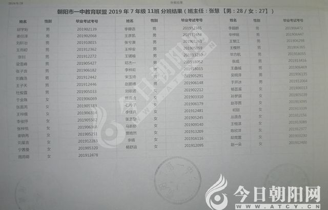 家長速看!朝陽市一中教育聯(lián)盟2019年新生分班表