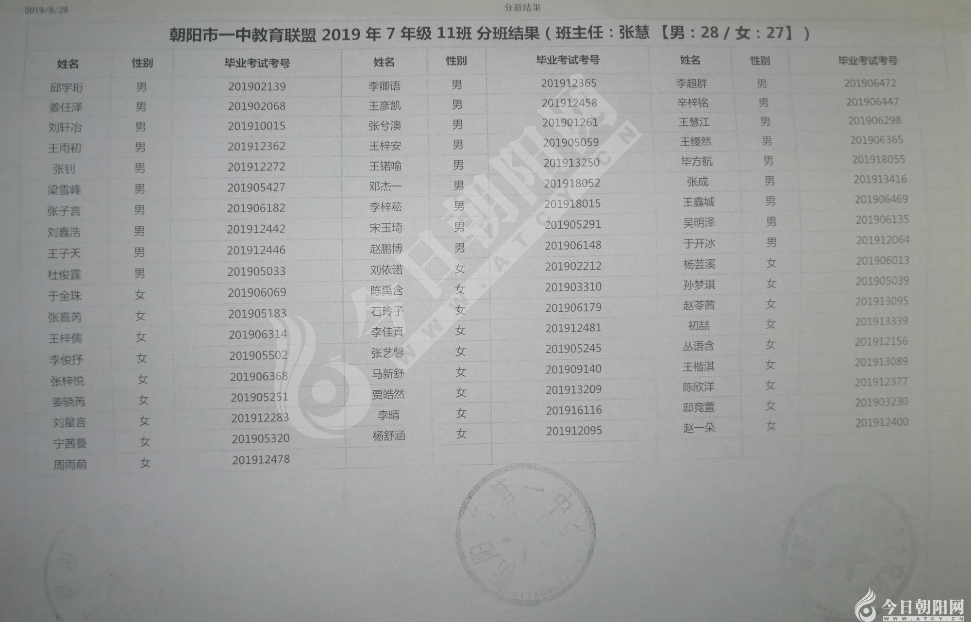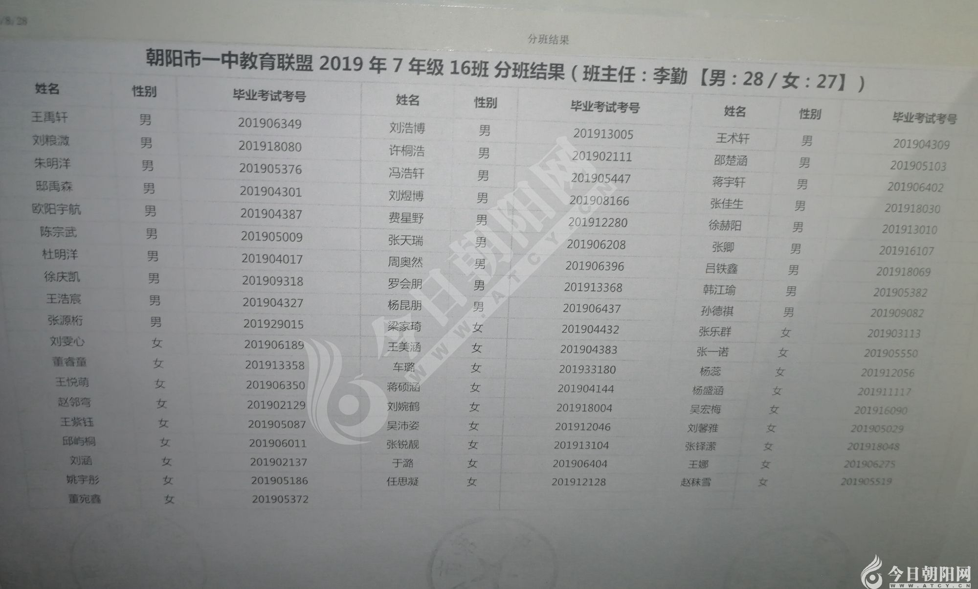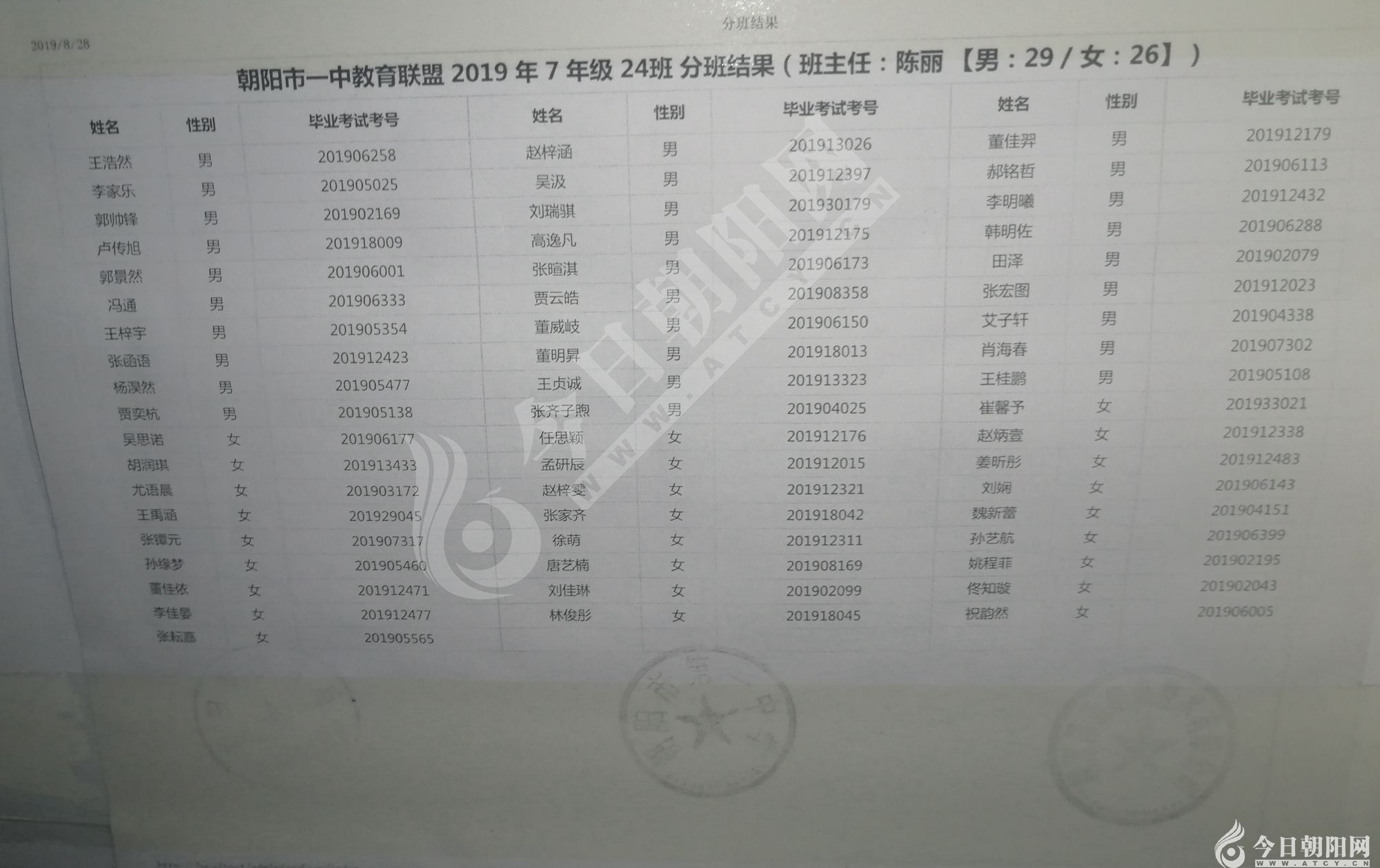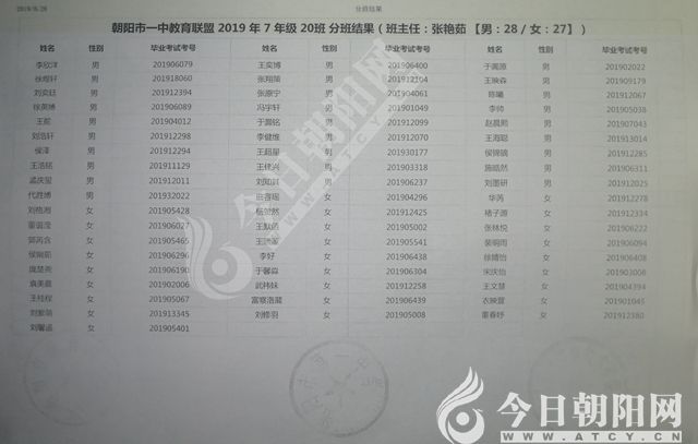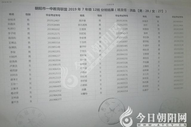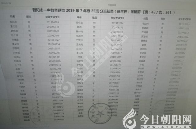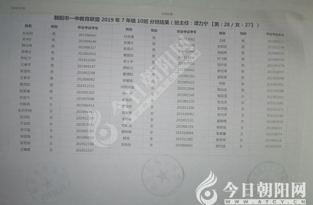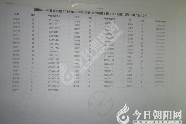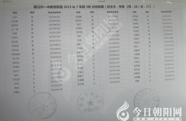 家長速看!朝陽市一中教育聯(lián)盟2019年新生分班表
