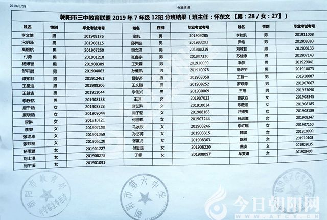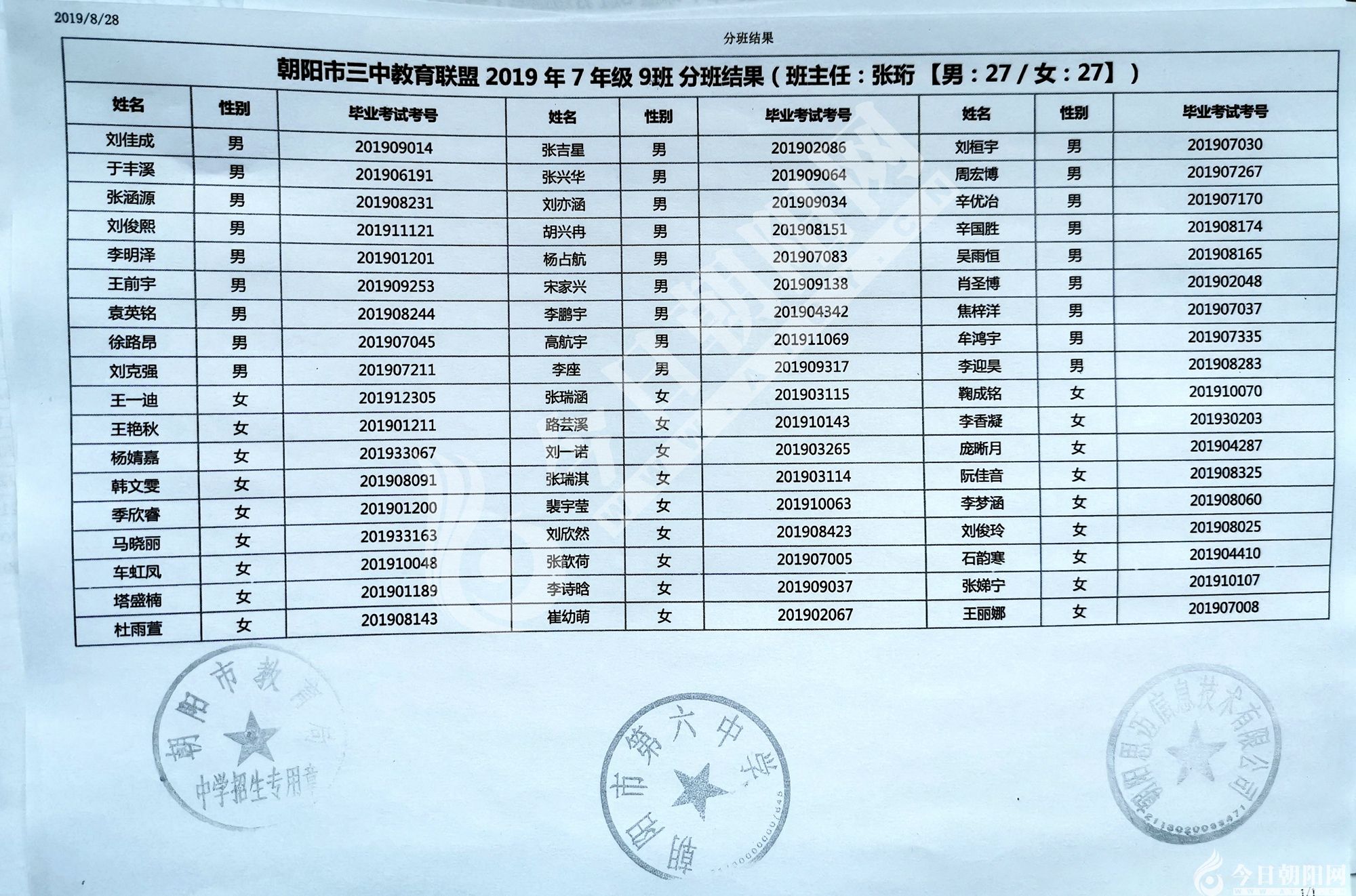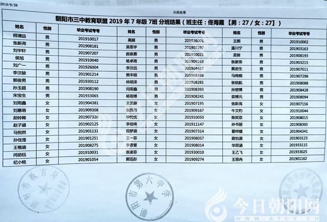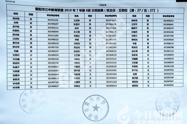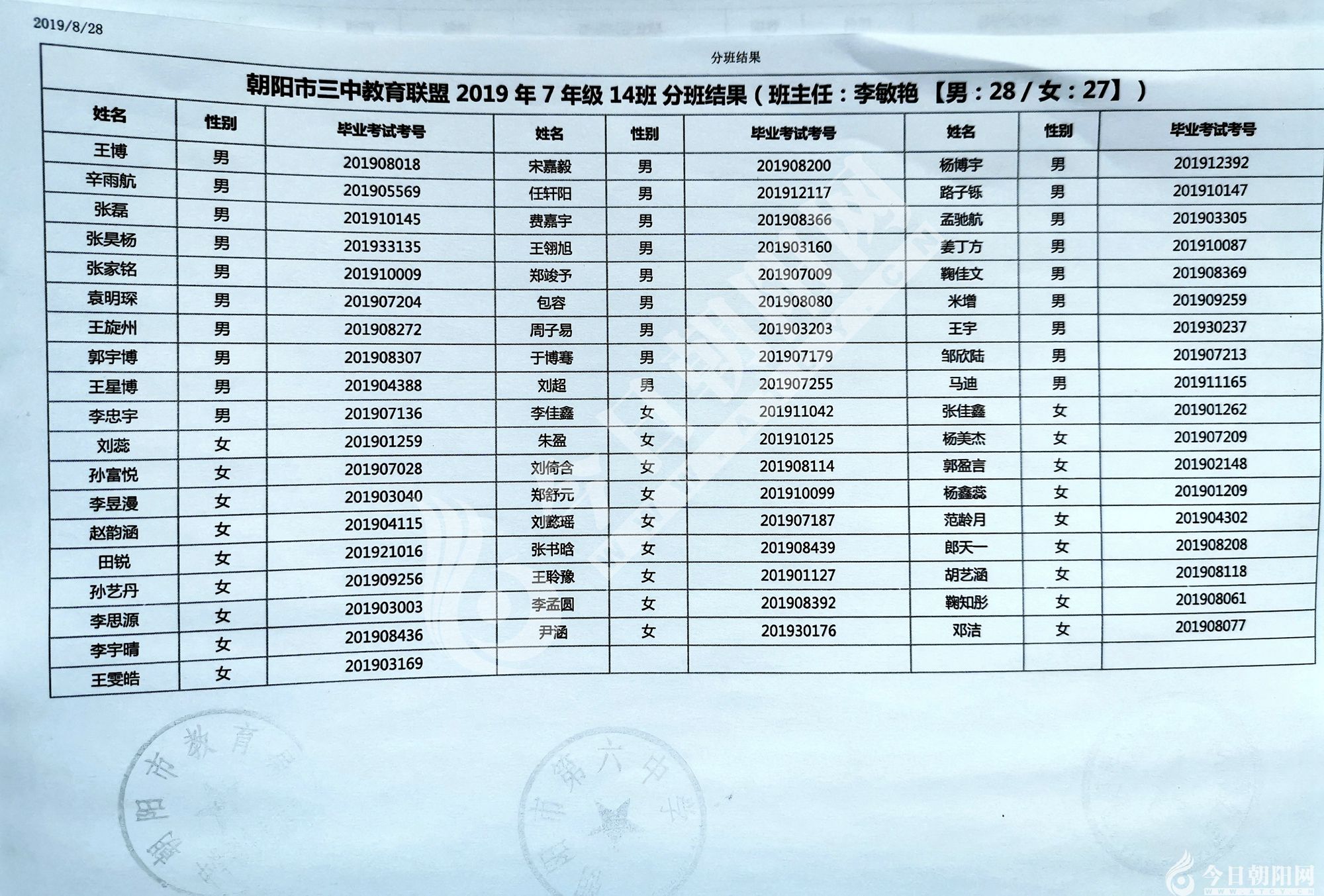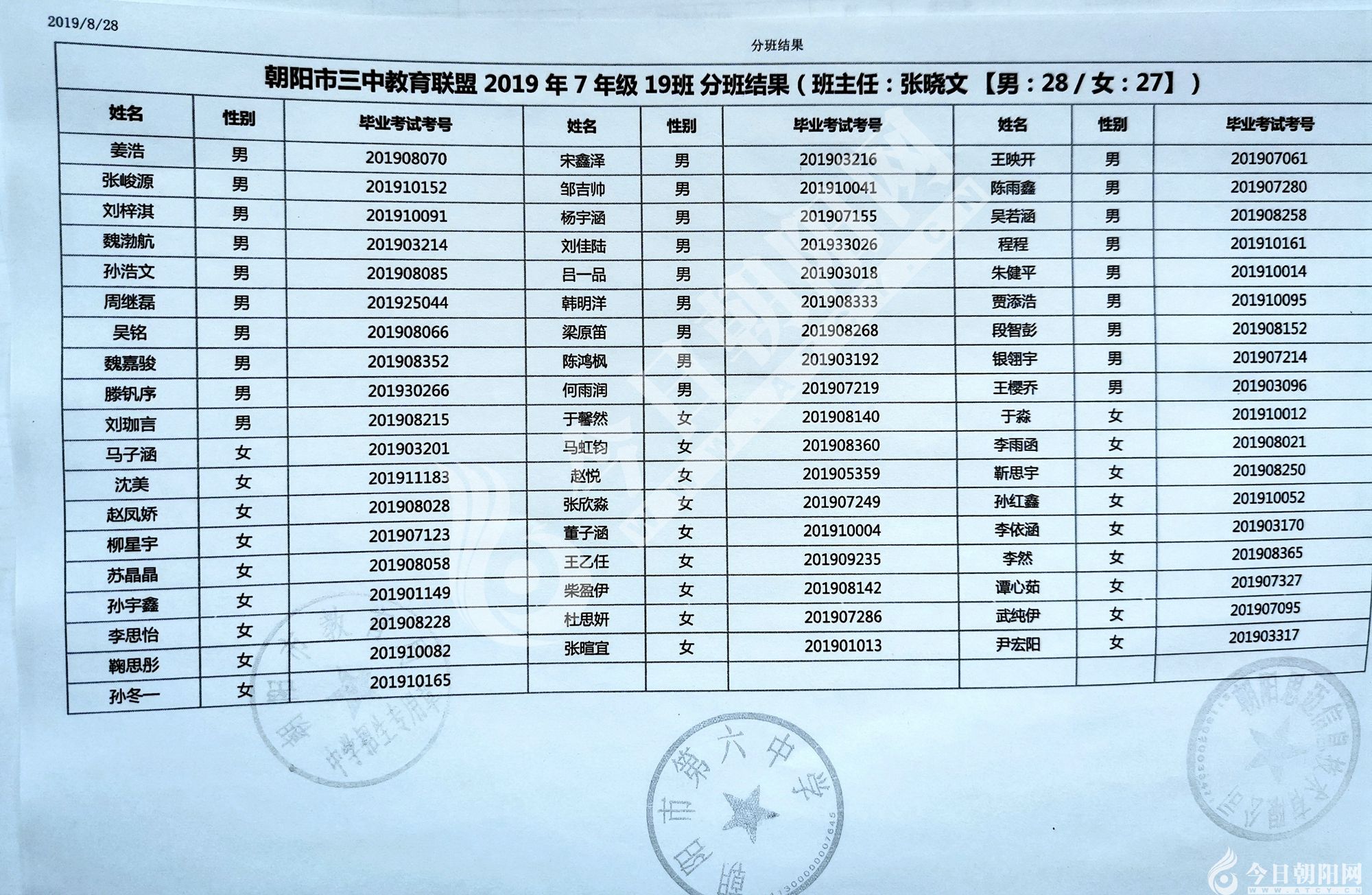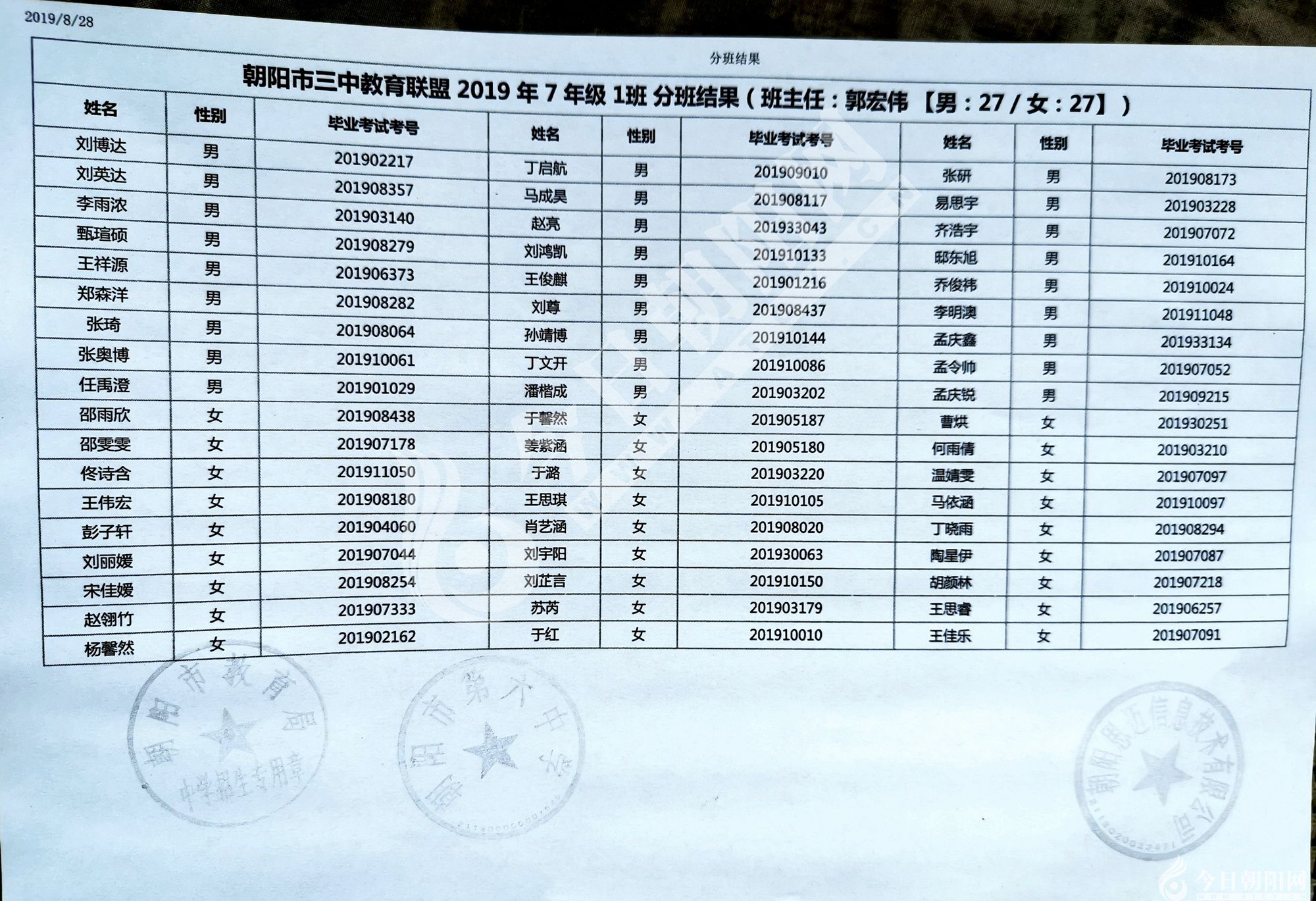 家長(zhǎng)速看!朝陽(yáng)市三中教育聯(lián)盟2019年新生分班表