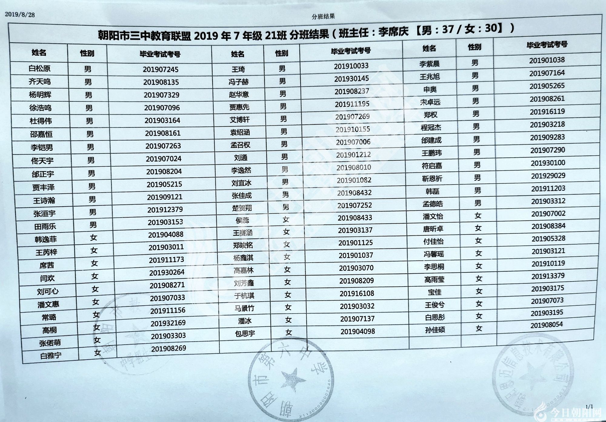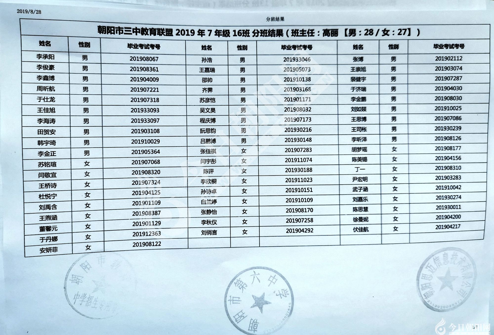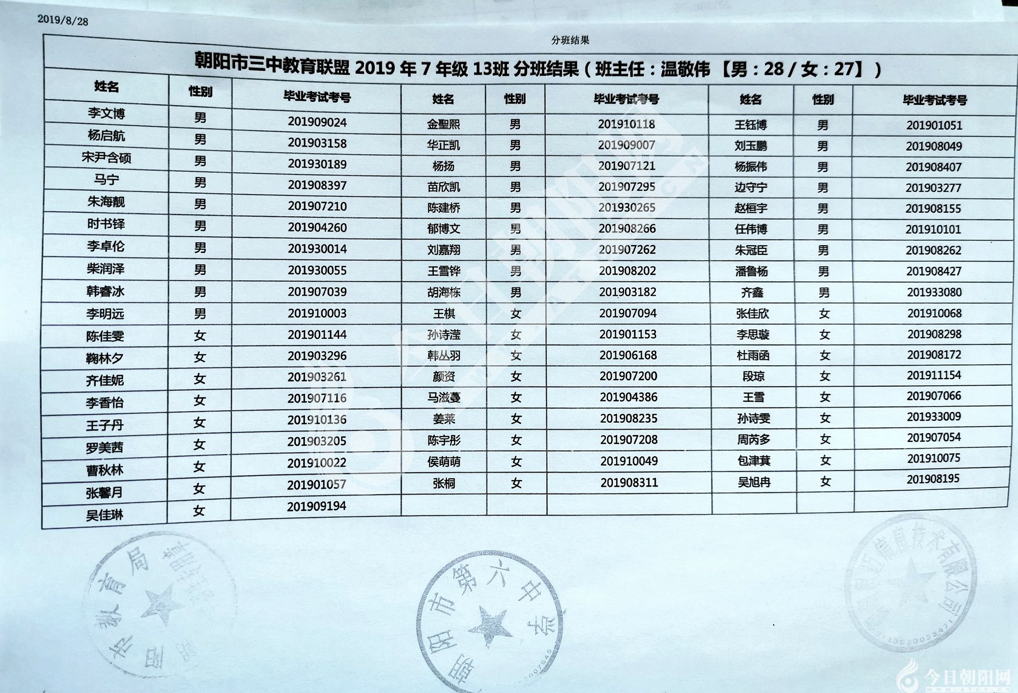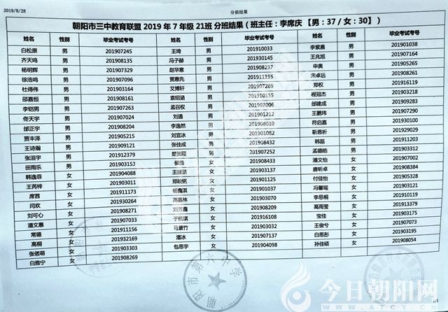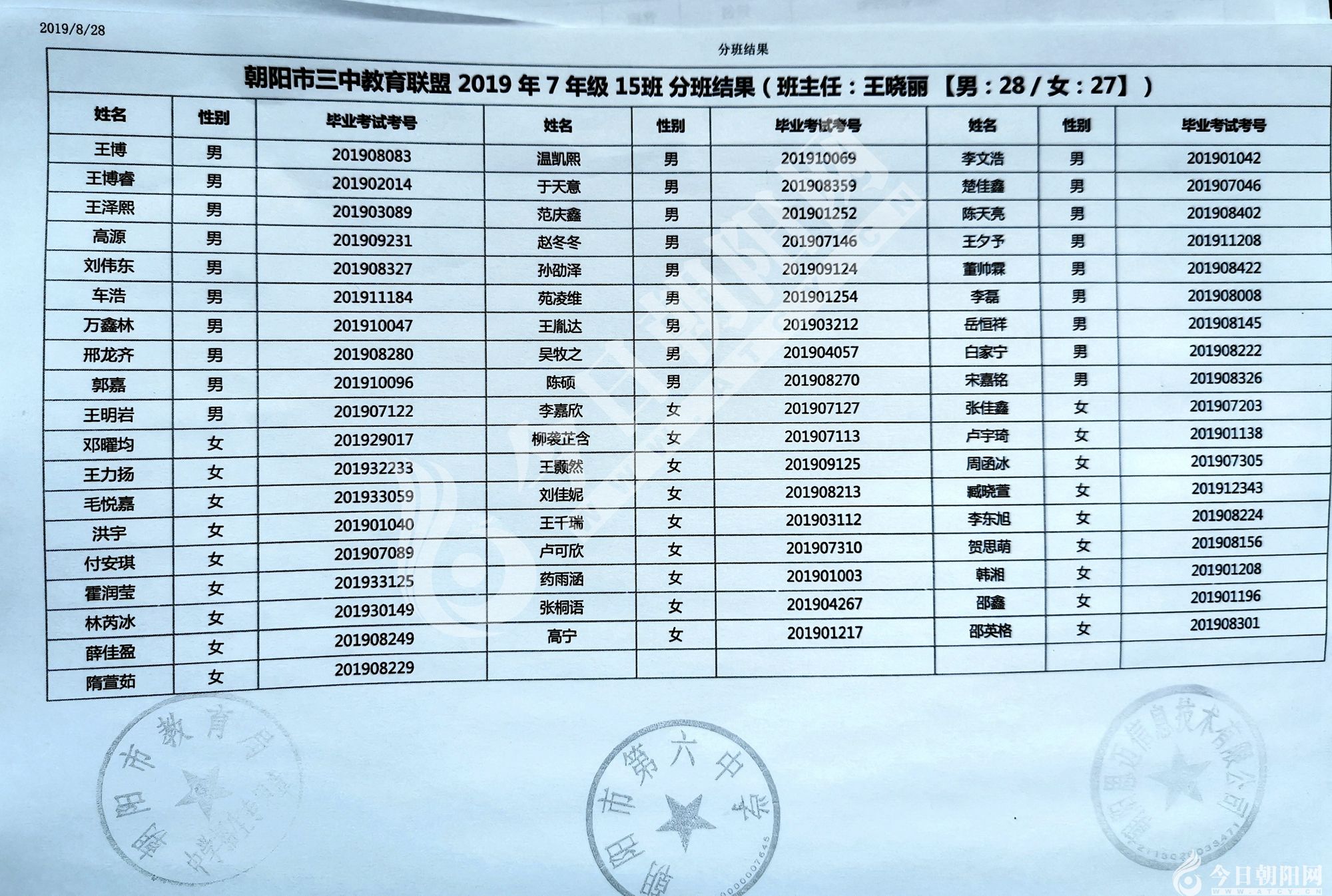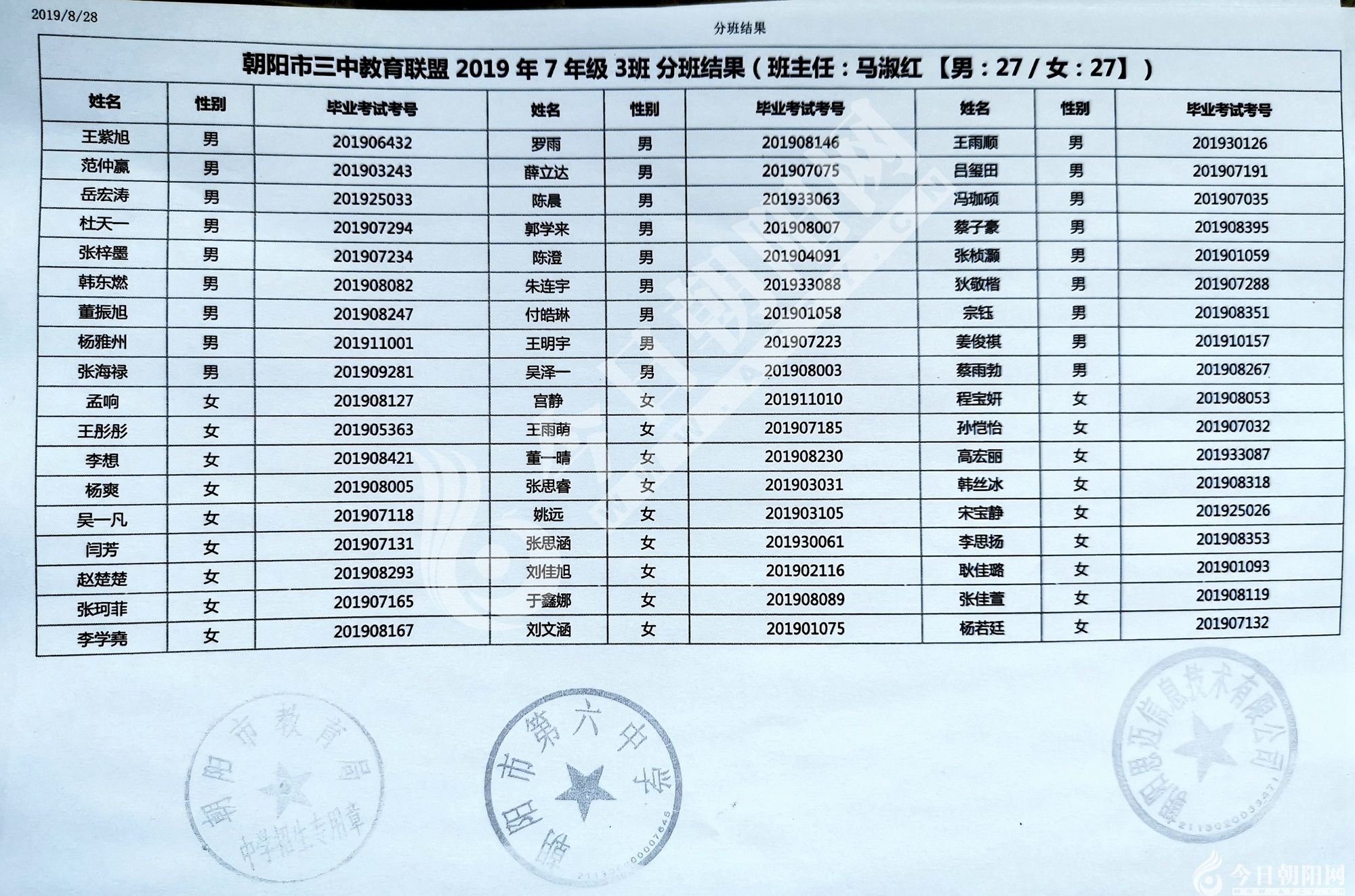家長(zhǎng)速看!朝陽(yáng)市三中教育聯(lián)盟2019年新生分班表