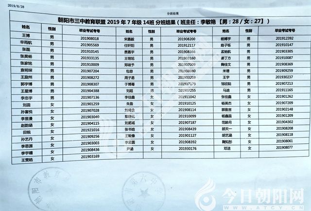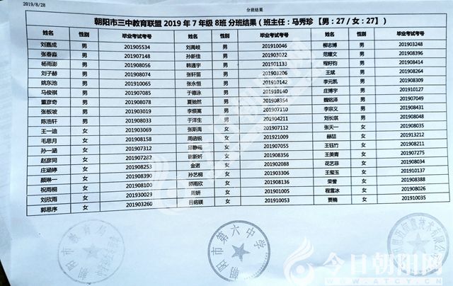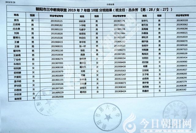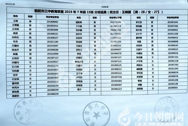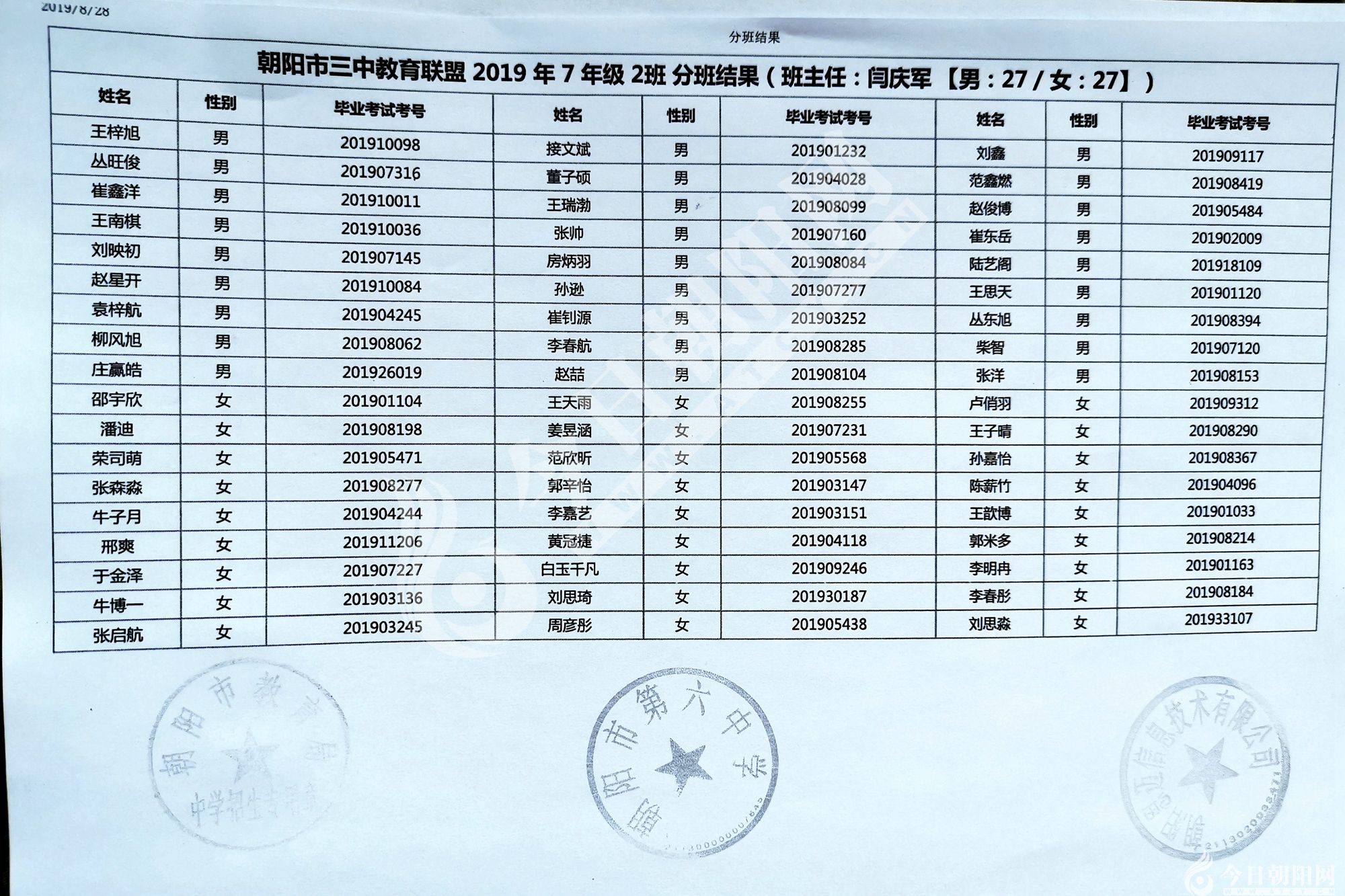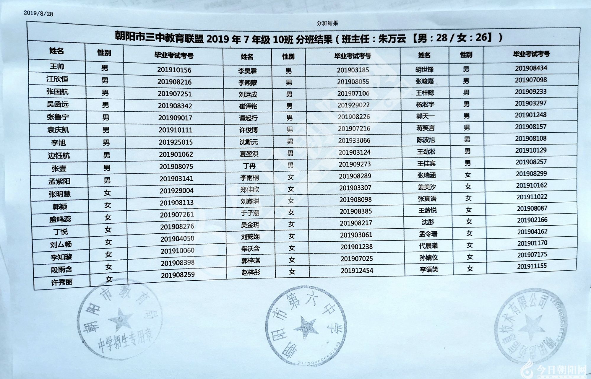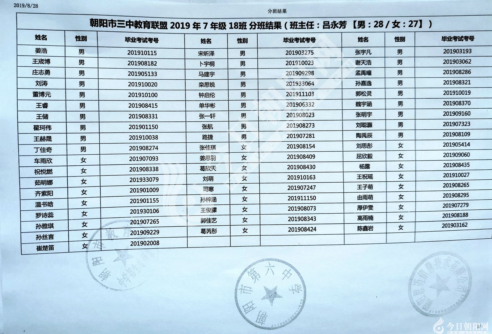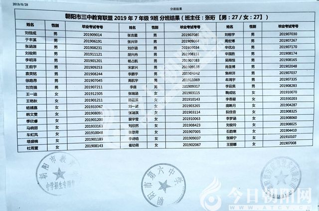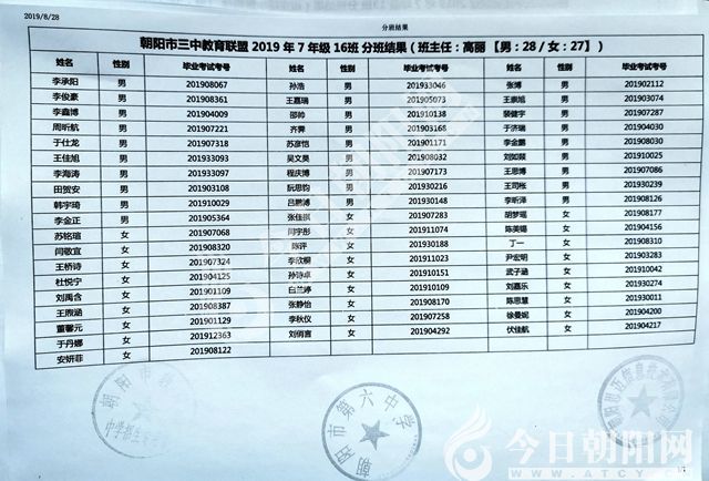 家長(zhǎng)速看!朝陽(yáng)市三中教育聯(lián)盟2019年新生分班表