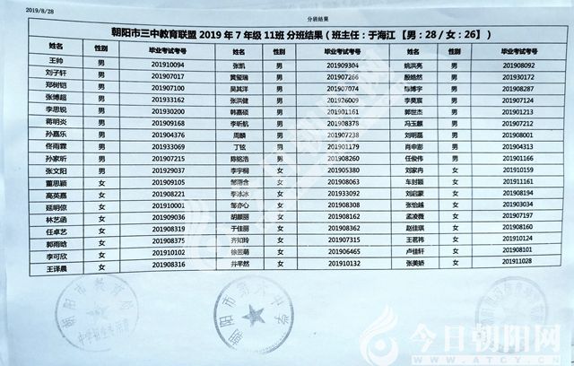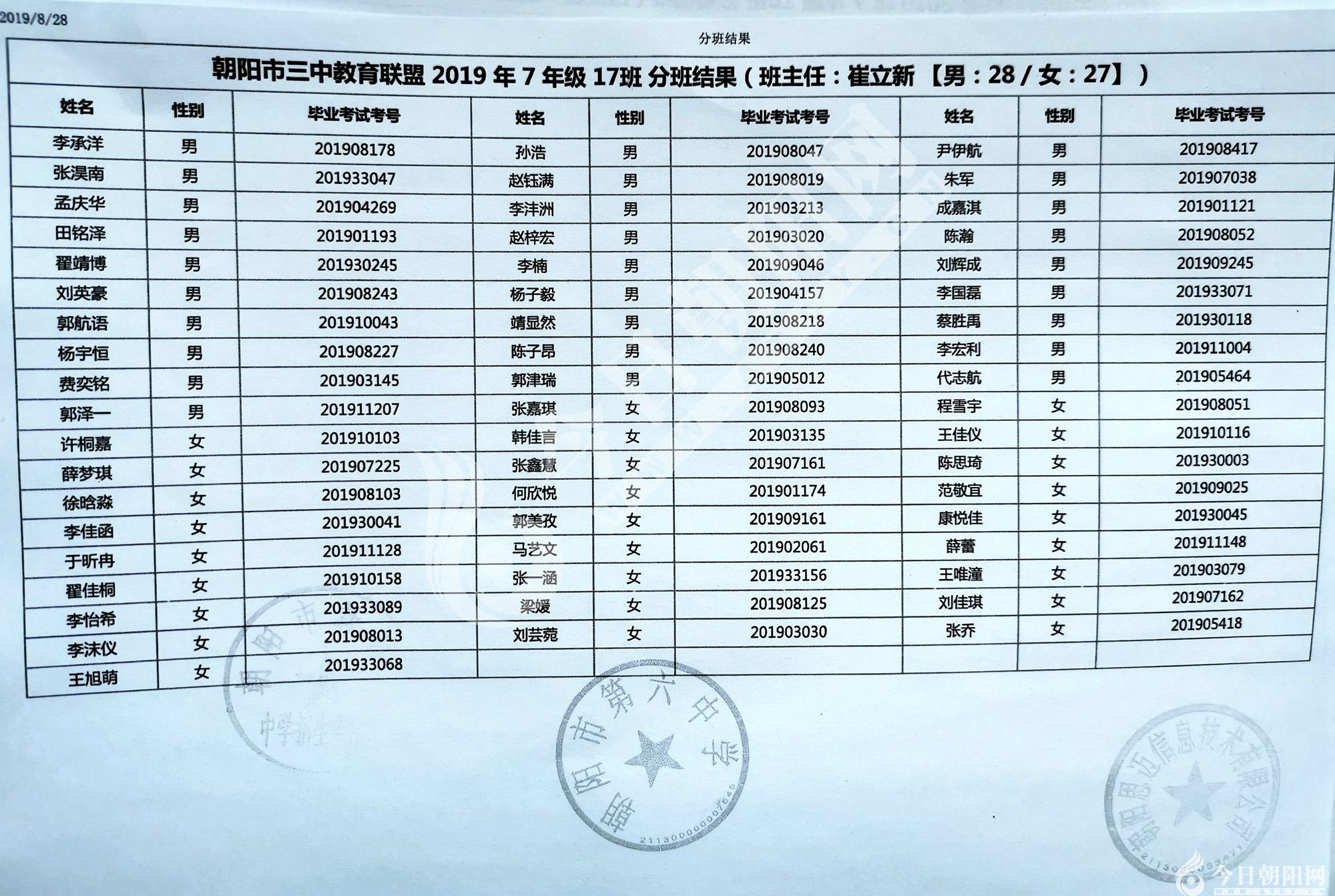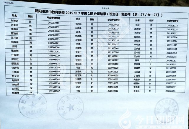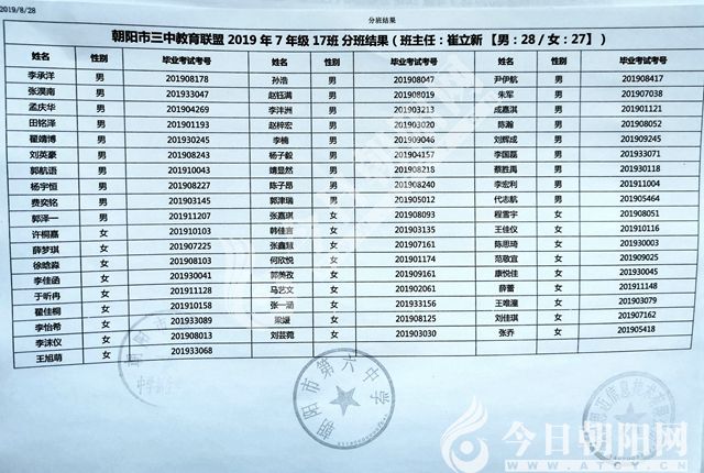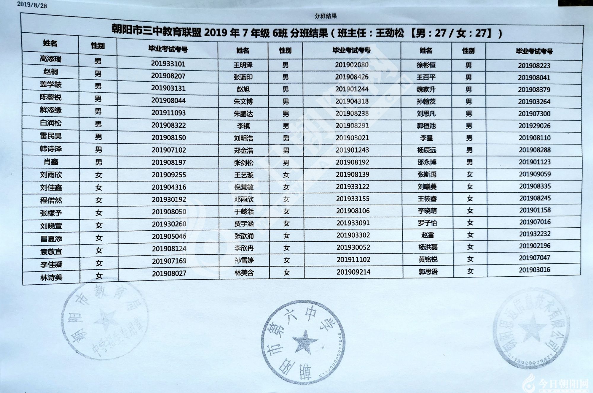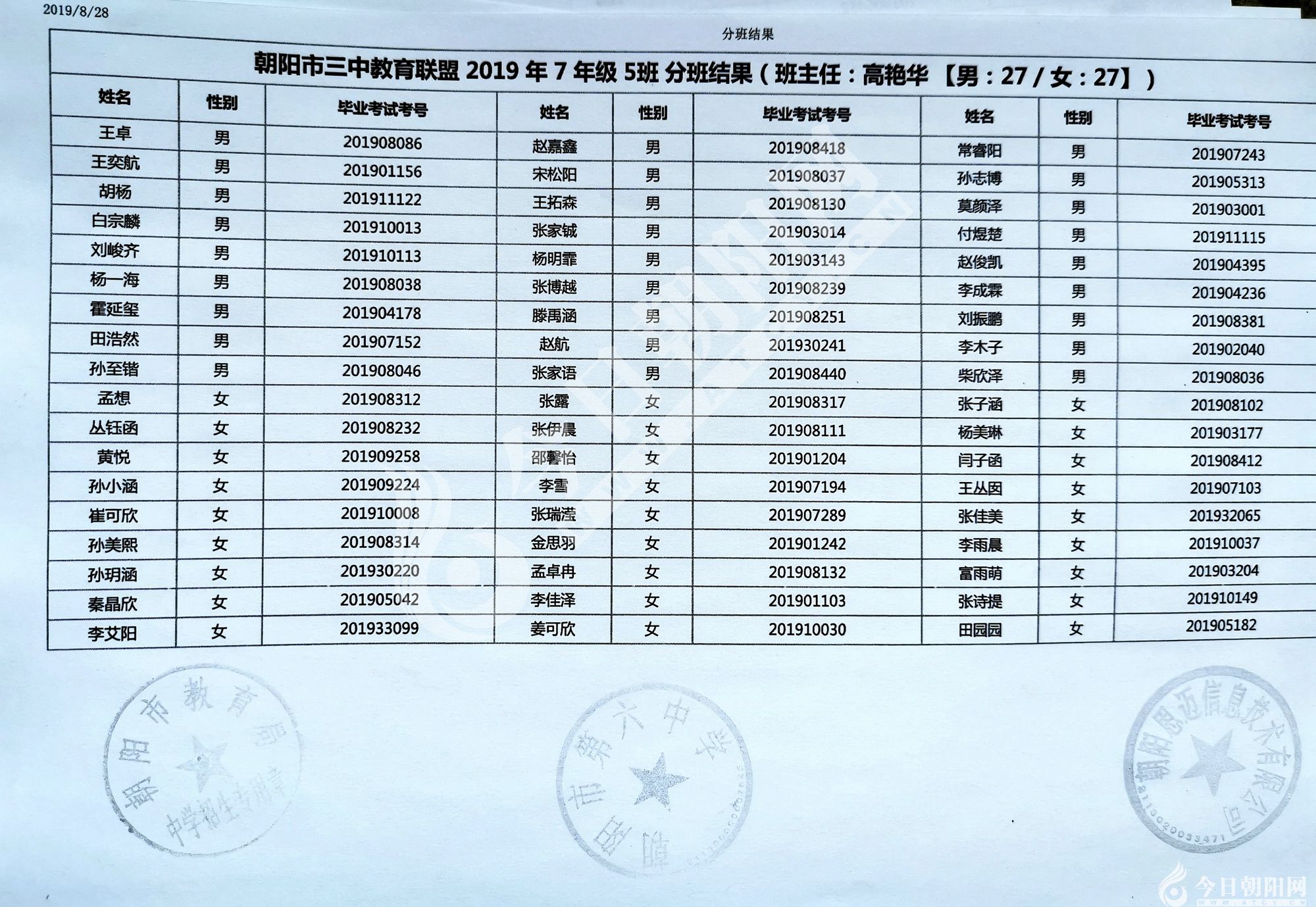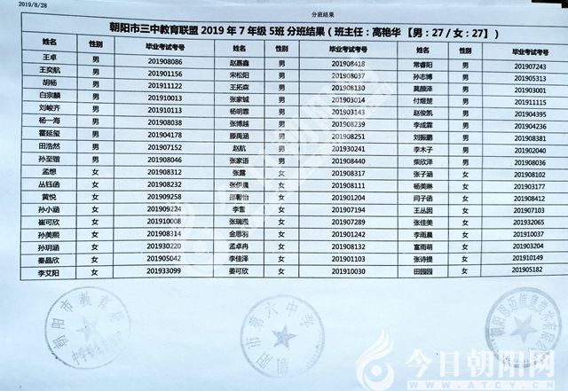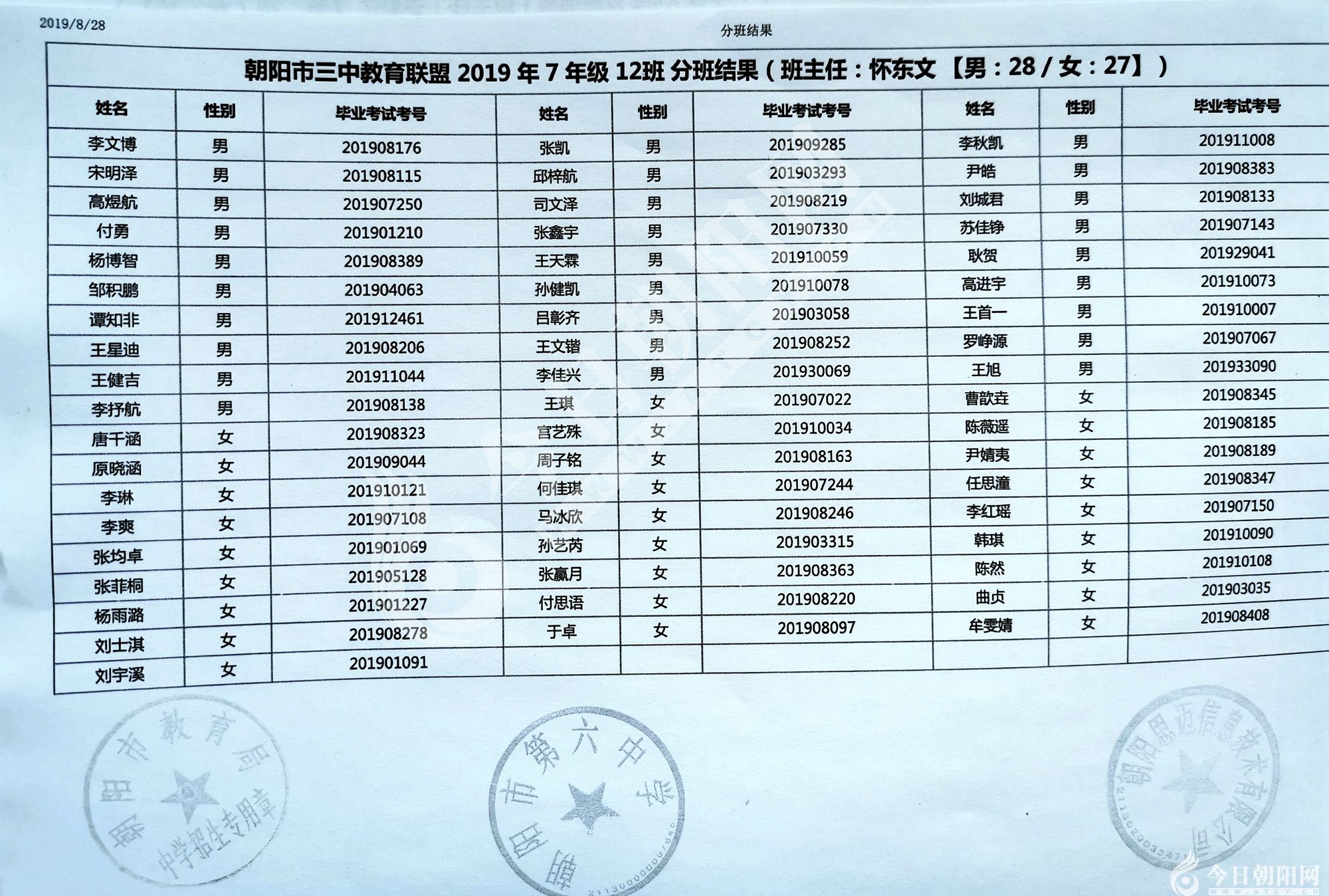 家長(zhǎng)速看!朝陽(yáng)市三中教育聯(lián)盟2019年新生分班表