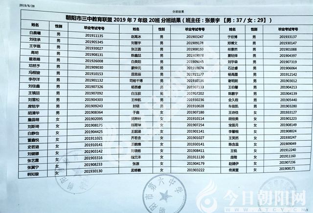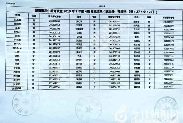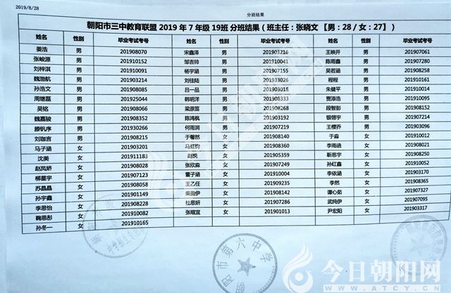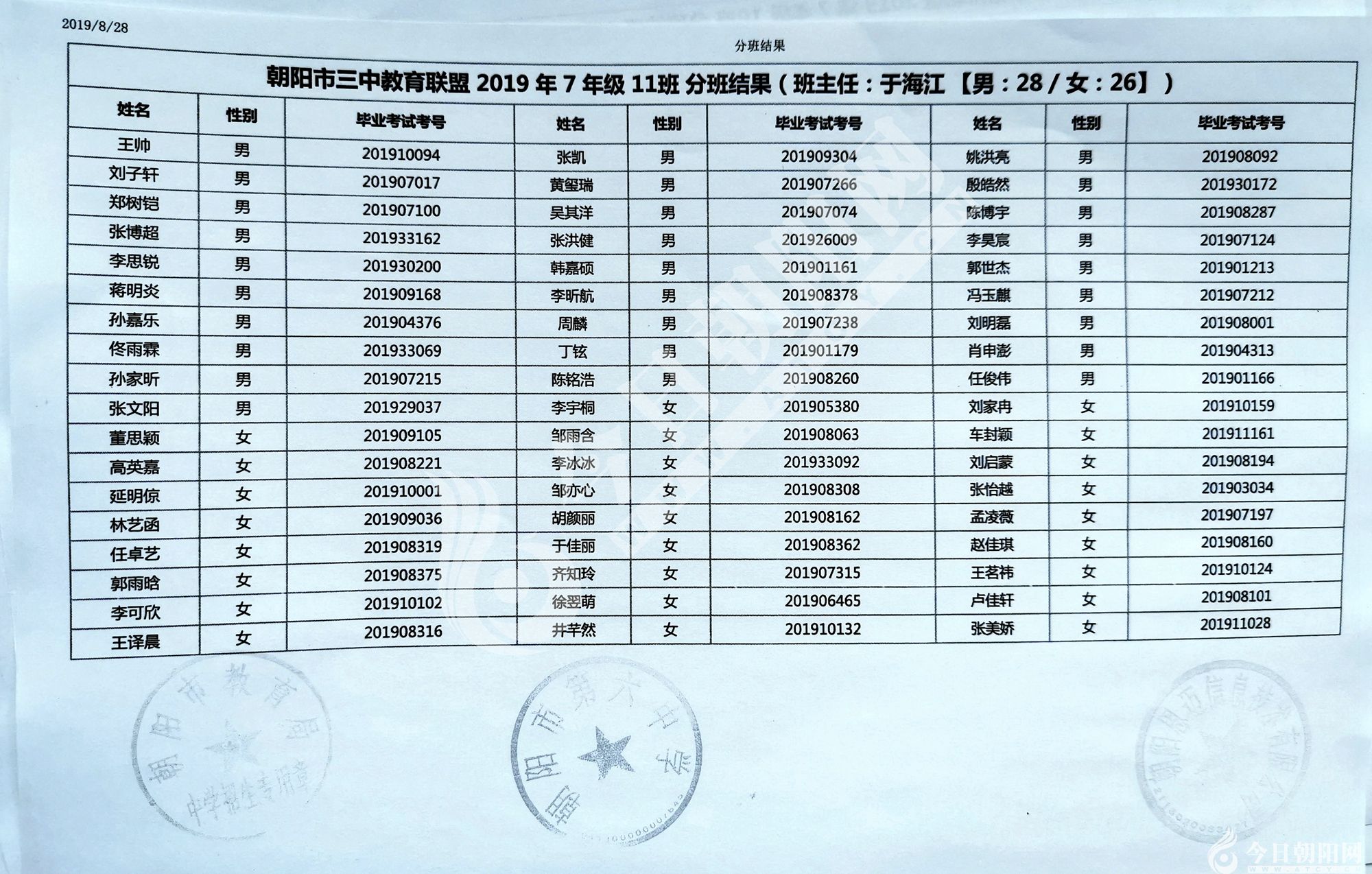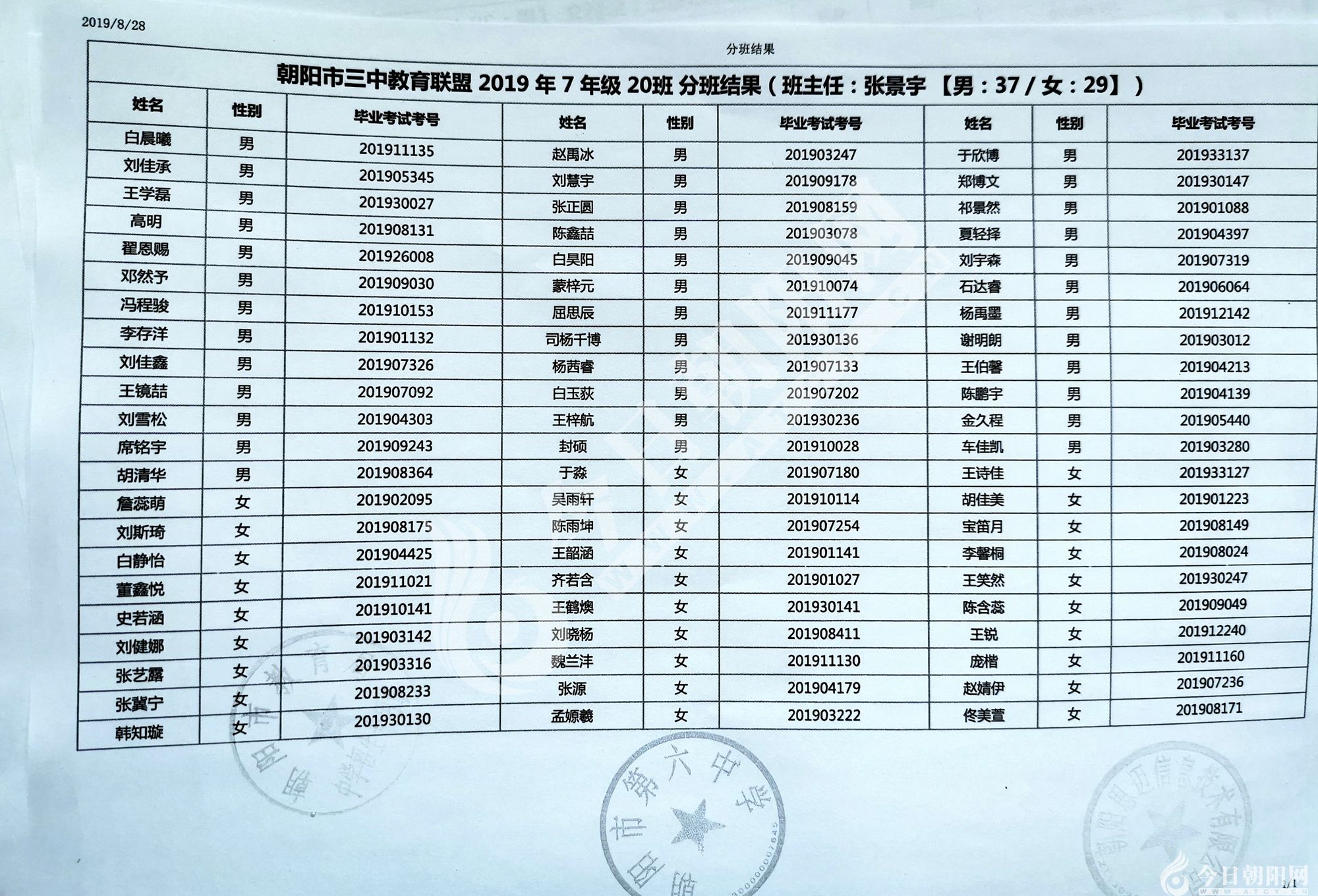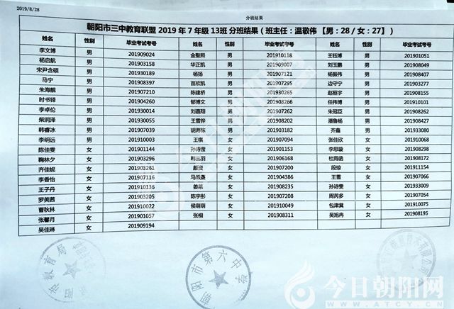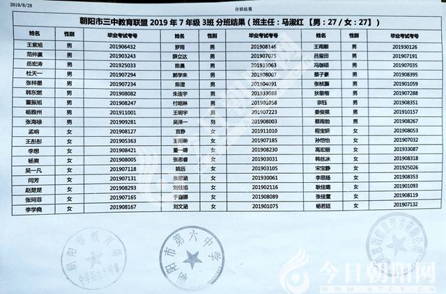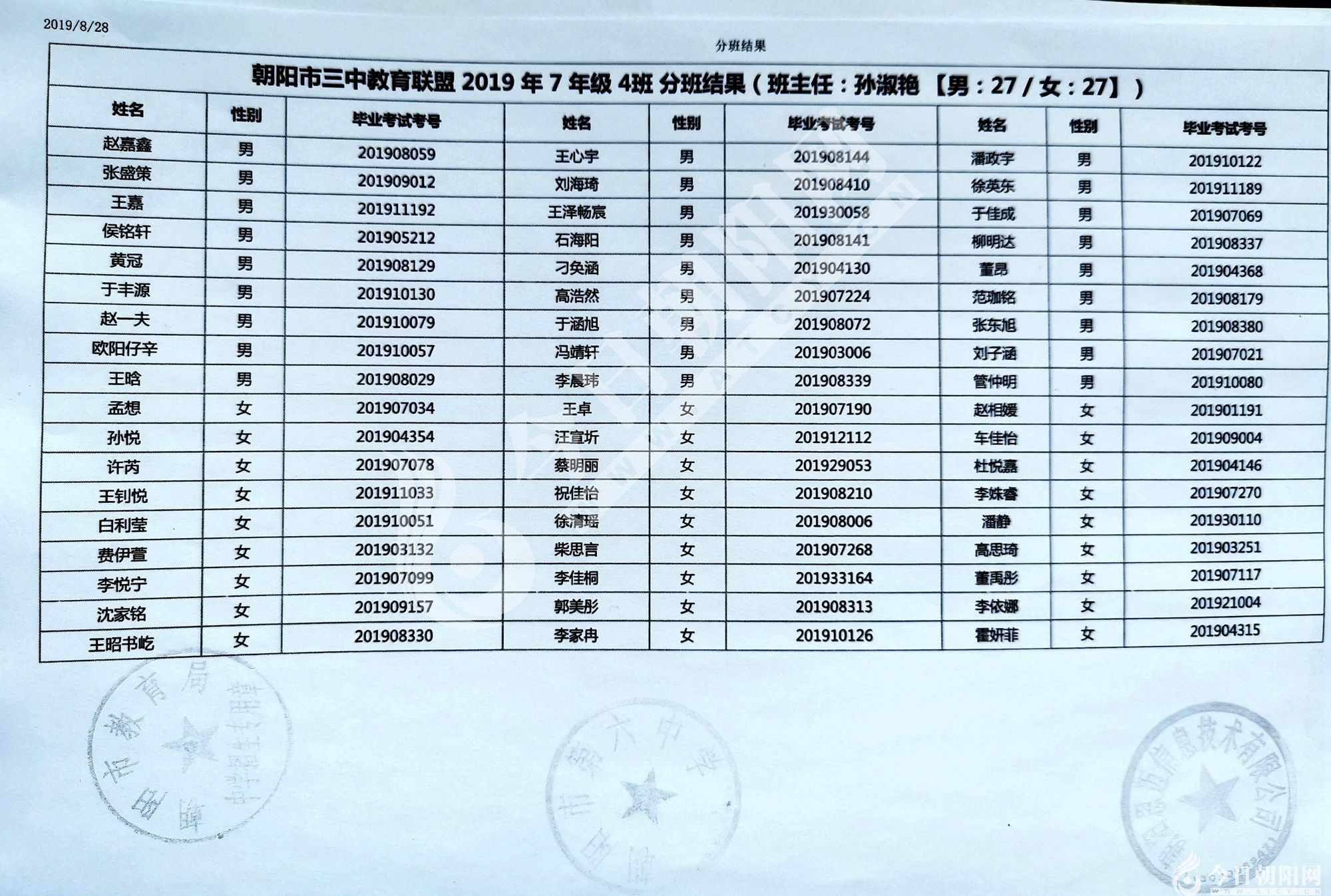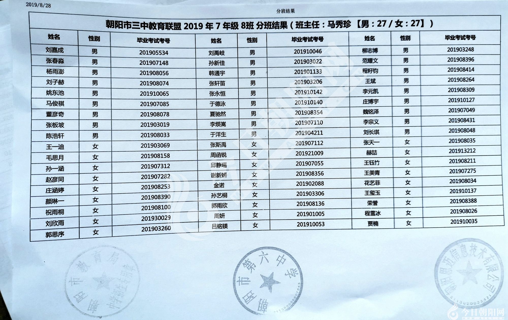 家長(zhǎng)速看!朝陽(yáng)市三中教育聯(lián)盟2019年新生分班表