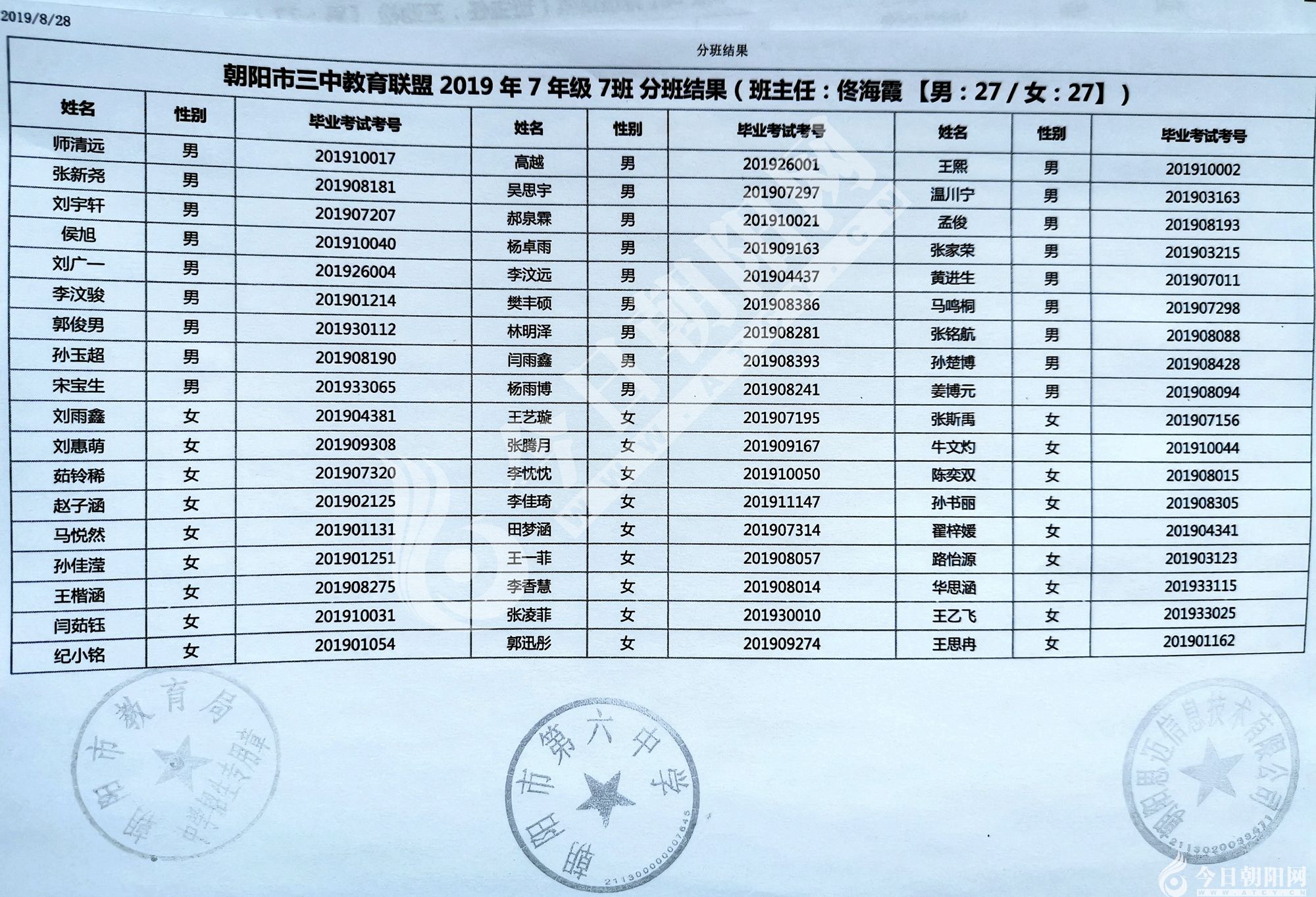 家長(zhǎng)速看!朝陽(yáng)市第七中學(xué)2019年新生分班表