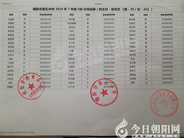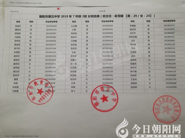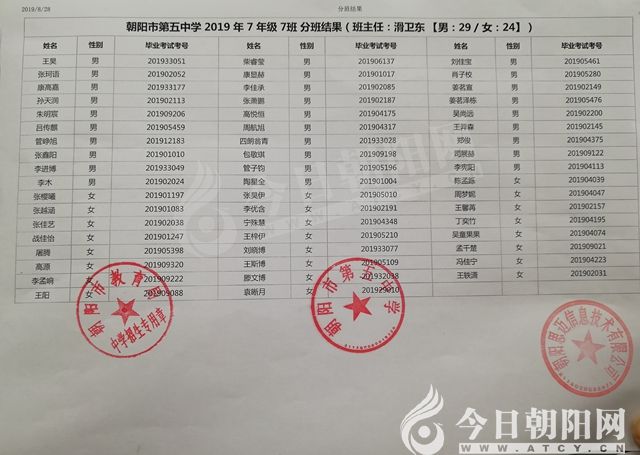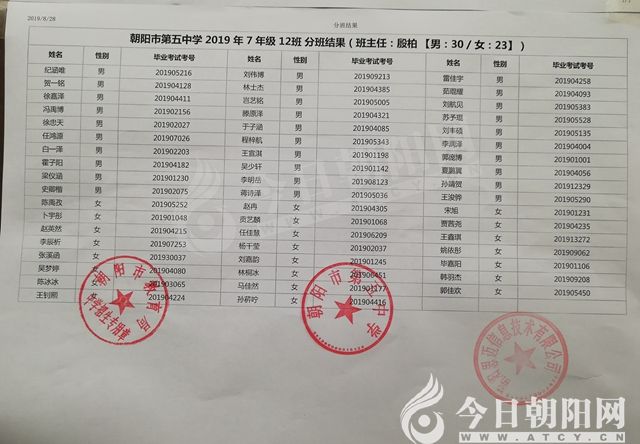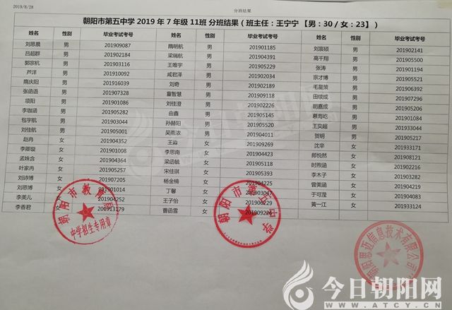 家長速看!朝陽市一中教育聯(lián)盟2019年新生分班表