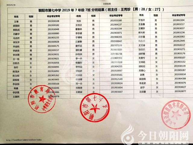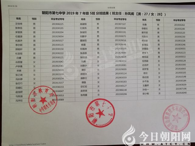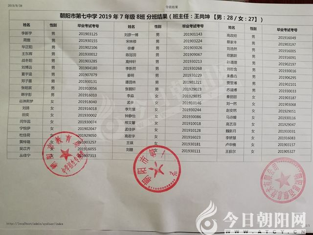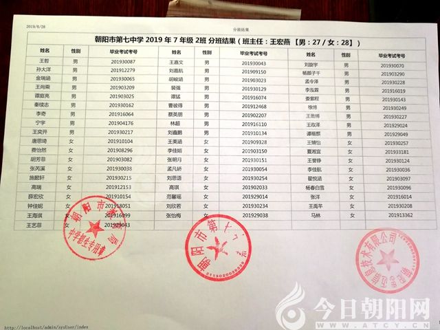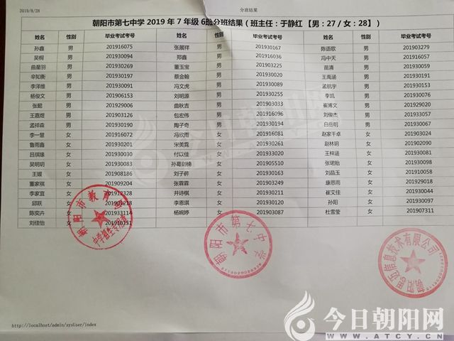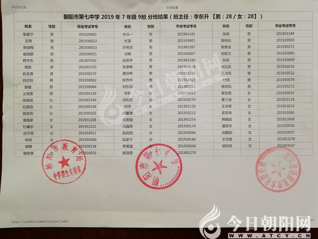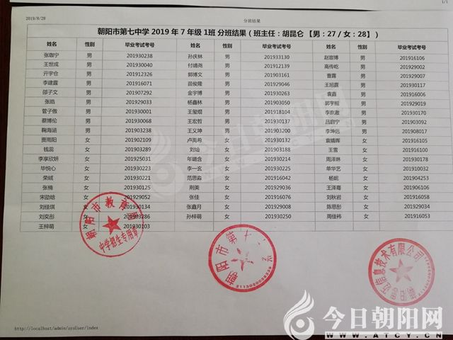 家長速看!朝陽市一中教育聯(lián)盟2019年新生分班表