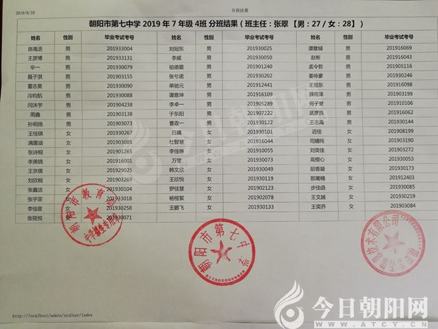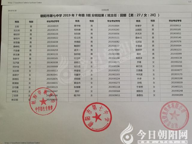 家長速看!朝陽市三中教育聯(lián)盟2019年新生分班表