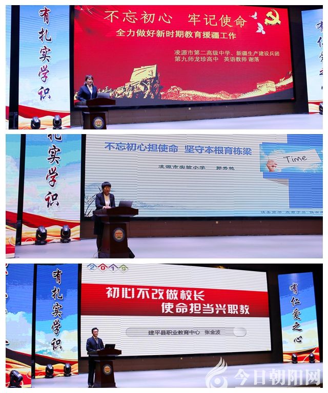 10月23日,遼寧省朝陽市教育系統(tǒng)“不忘初心、牢記使命”典型事跡報告會在朝陽工程技術(shù)學校報告大廳舉行。朝陽市援疆干部,新疆生產(chǎn)建設(shè)兵團第九師161團、市教育局、市政府教育督導室、市教育服務(wù)中心有關(guān)領(lǐng)導,各縣(市)區(qū)教育局分管領(lǐng)導,基層學校校長、書記、教師代表及部分學生代表參加了會議。會議由朝陽市委教育工委專職副書記趙存忠主持。
